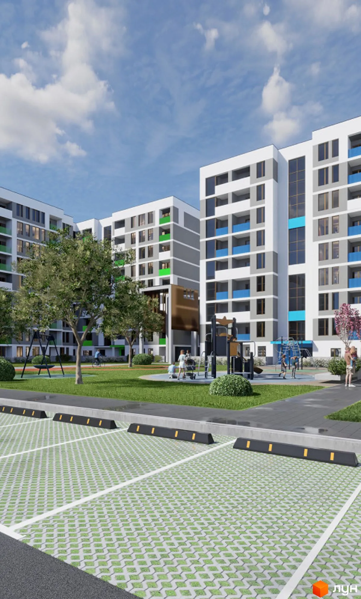 ЖК «Литовський квартал» – це не лише сучасні житлові будинки, а й озеленена територія для прогулянок та дозвілля, дитячі та спортивні майданчики, велодоріжки та відокремлене місце для паркування автомобілів. Задля безпеки та комфорту мешканців передбачено індивідуальний доступ до закритої території внутрішнього двору.