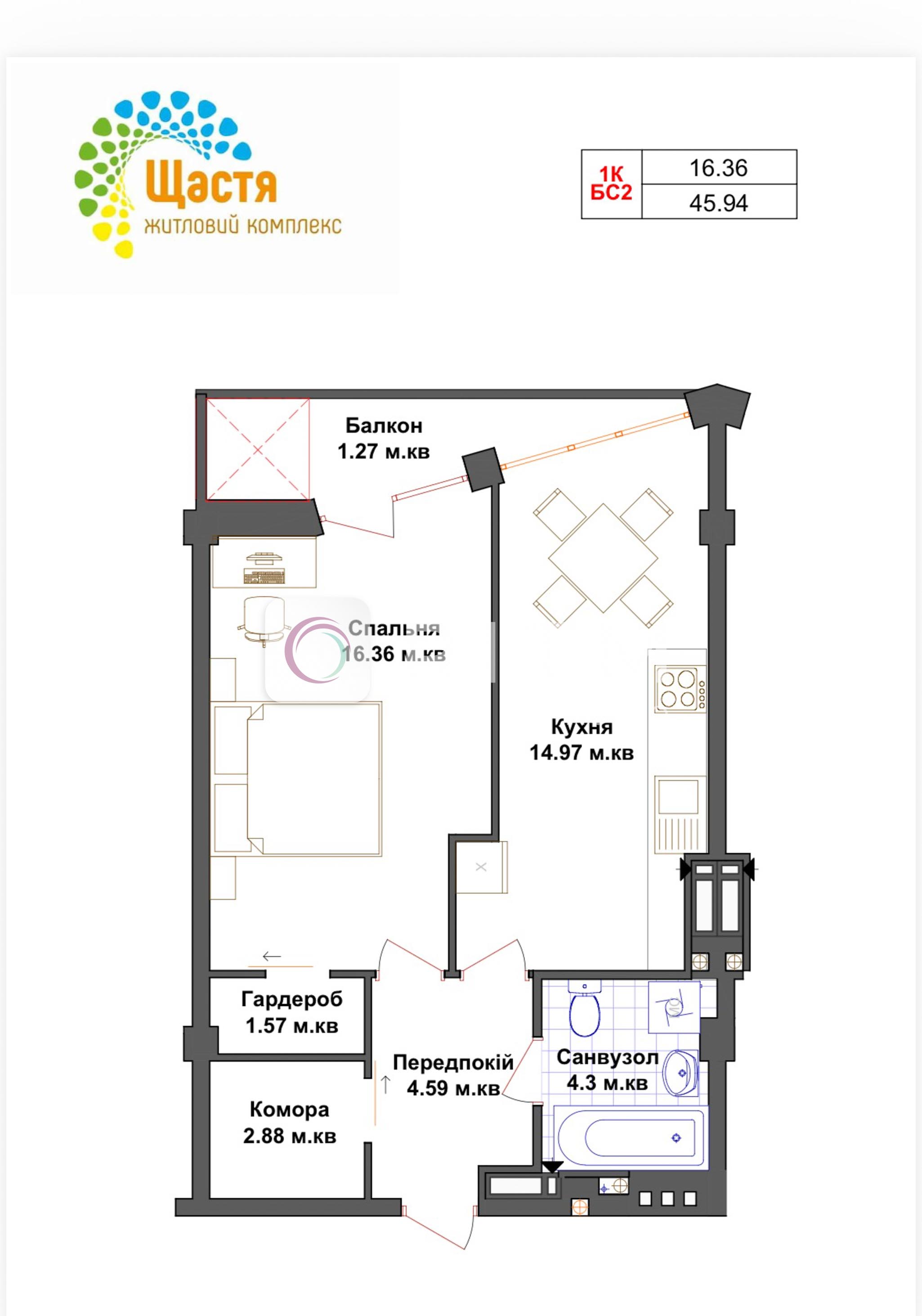 Продається 1 кімнатна квартира в ЖК Щастя