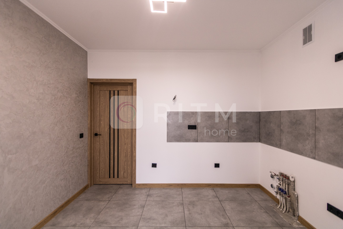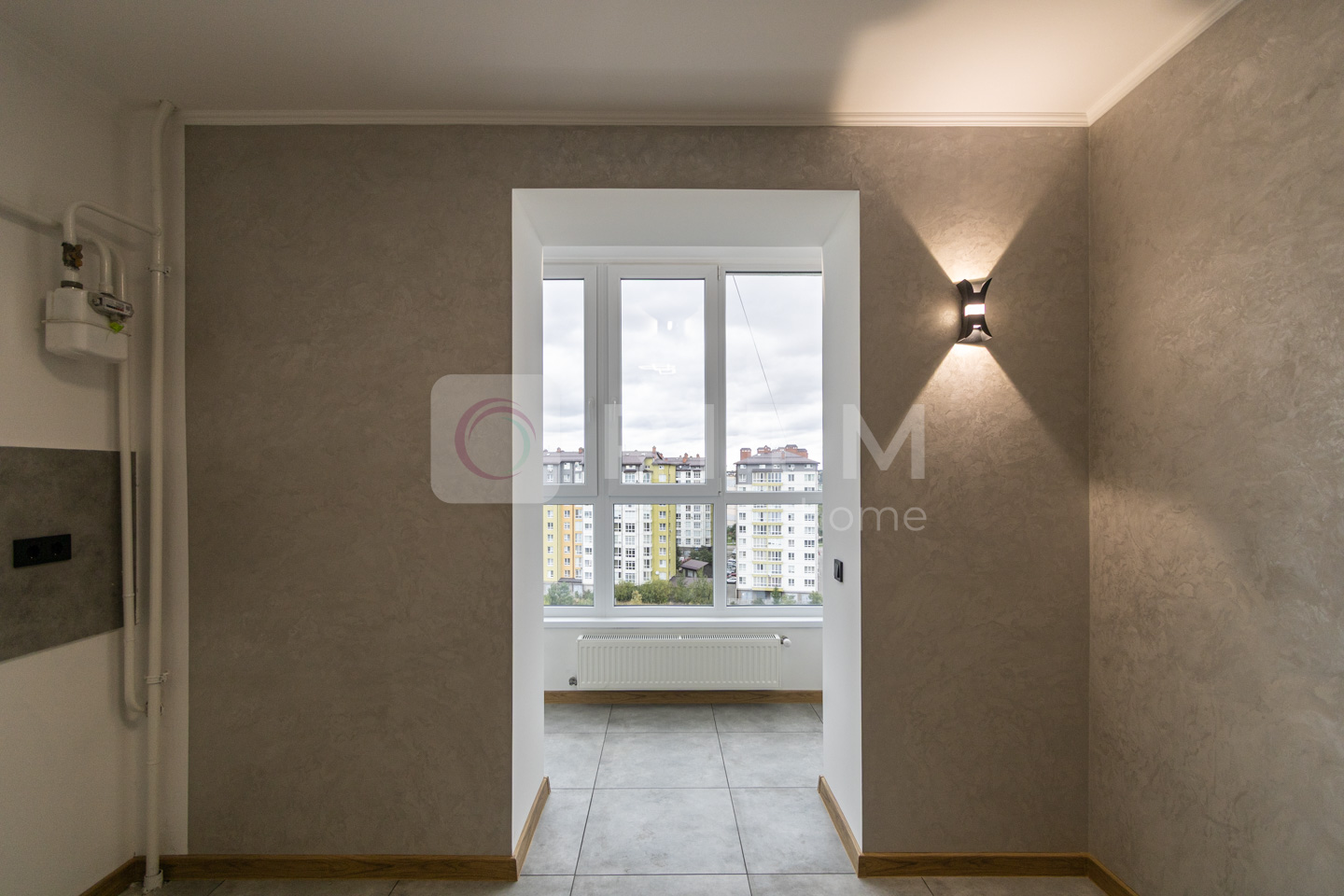 Стіни оздоблені декоративною штукатуркою та миючою фарбою.