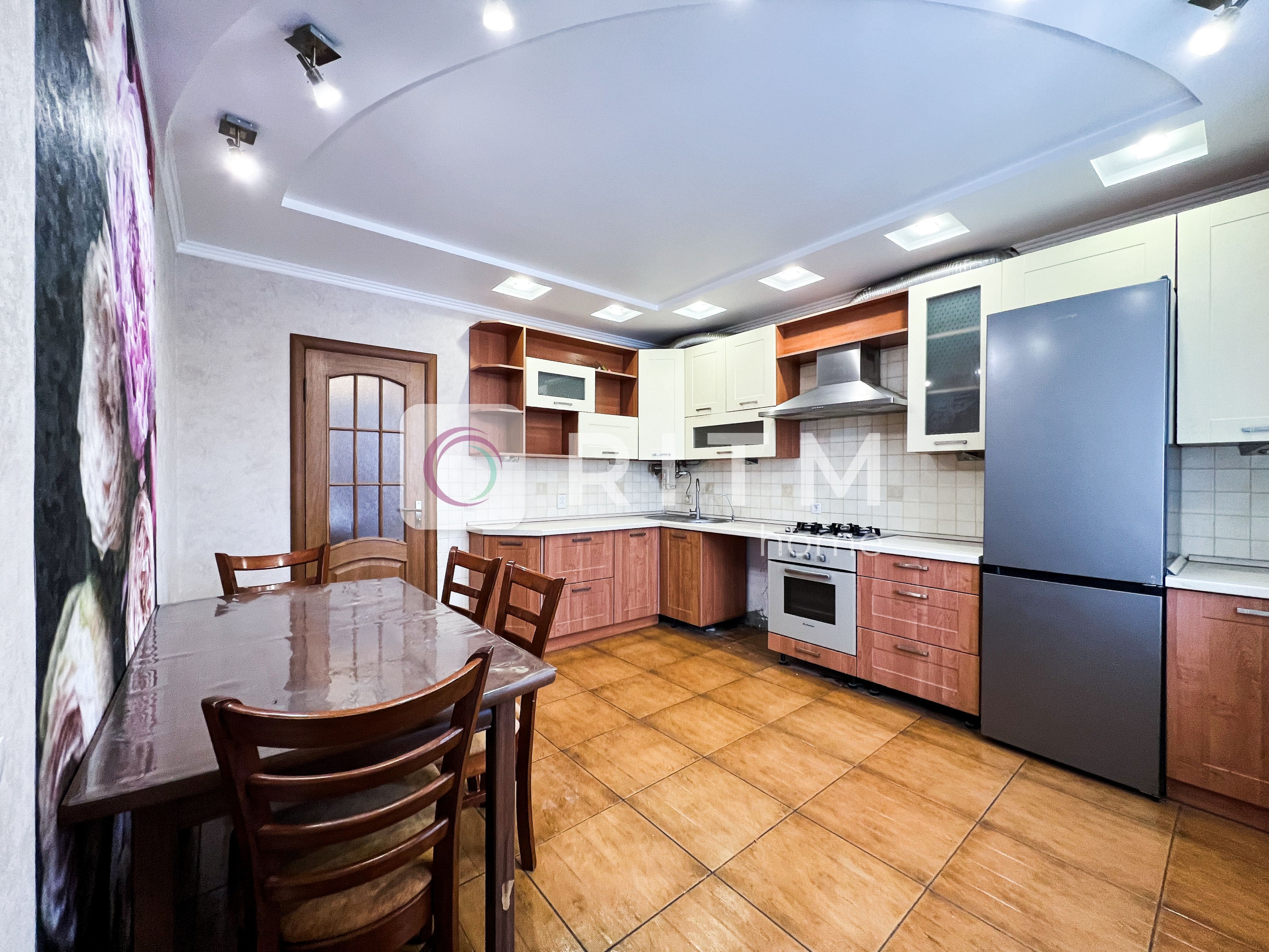 Має загальну площу 98 м², кухня — 14 м². Продумане багаторівневе планування створює відчуття простору, приватності та комфорту.