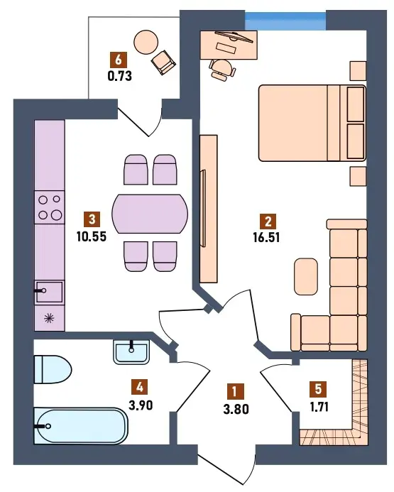 Площа квартири 16.51м2