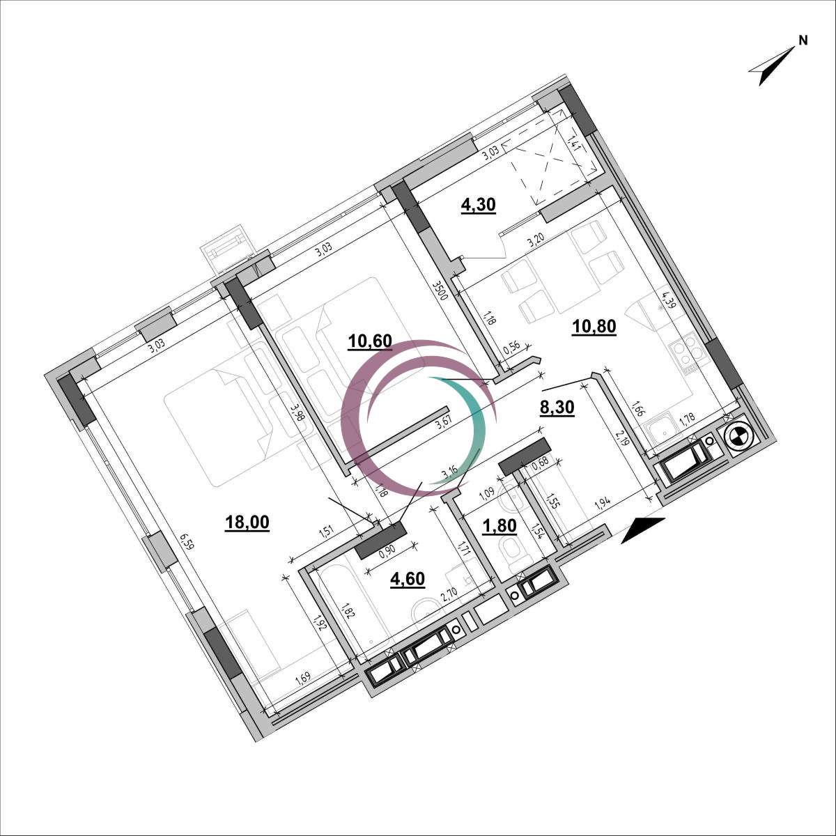 • Висота стелі — 2,8 м