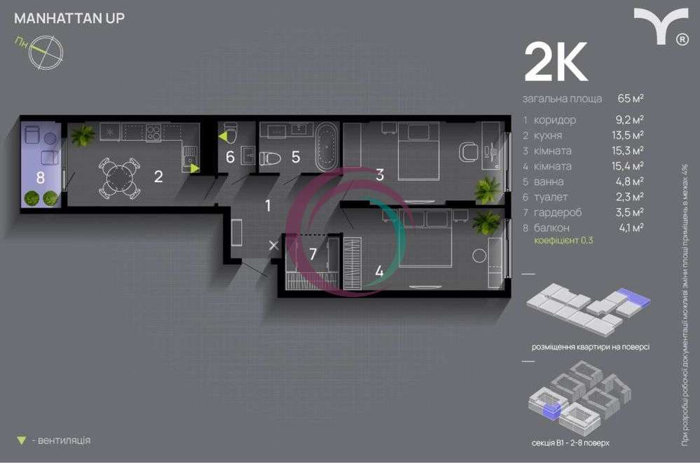Продаж 2-к. квартири в ЖК Manhattan UP. Секція B1.