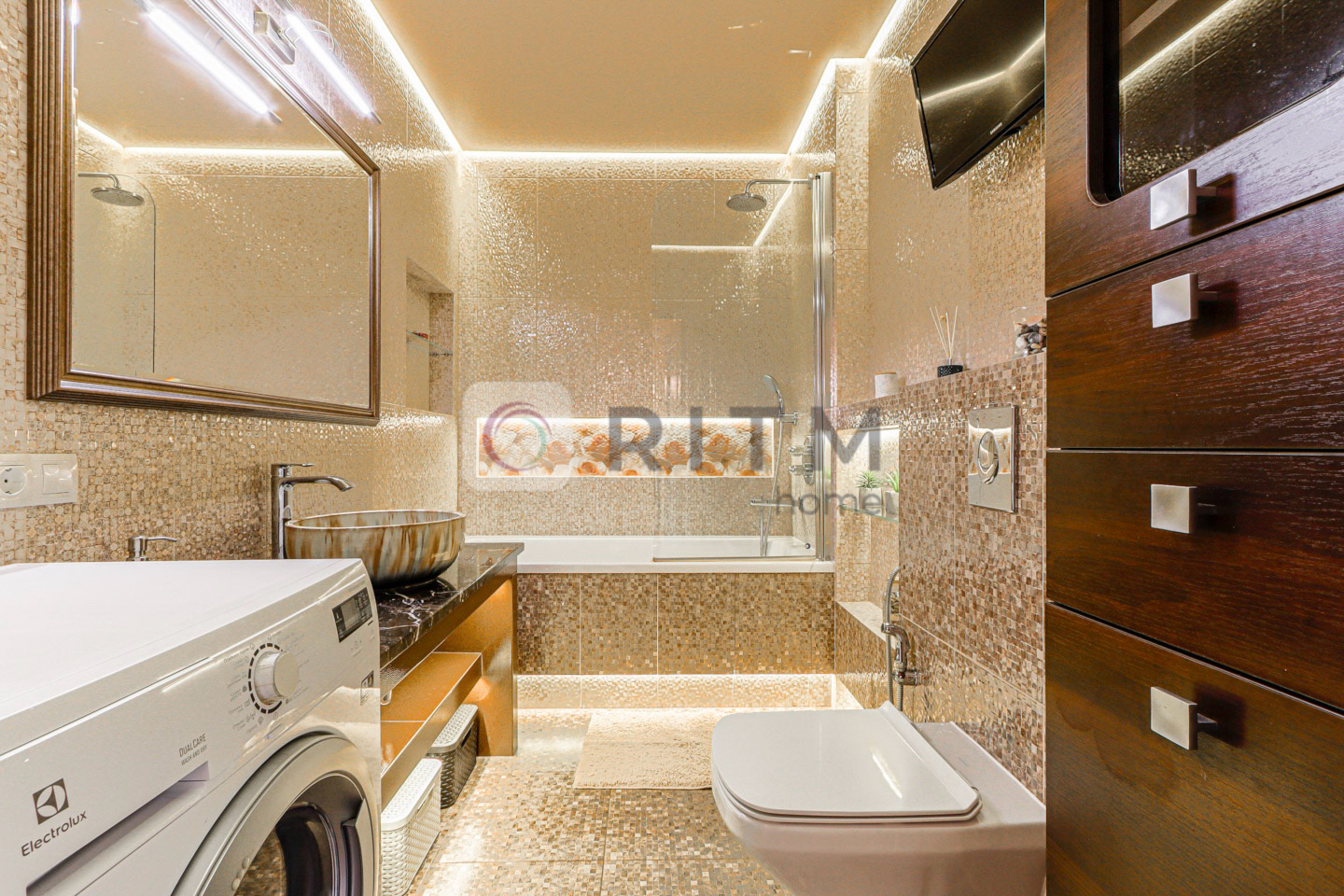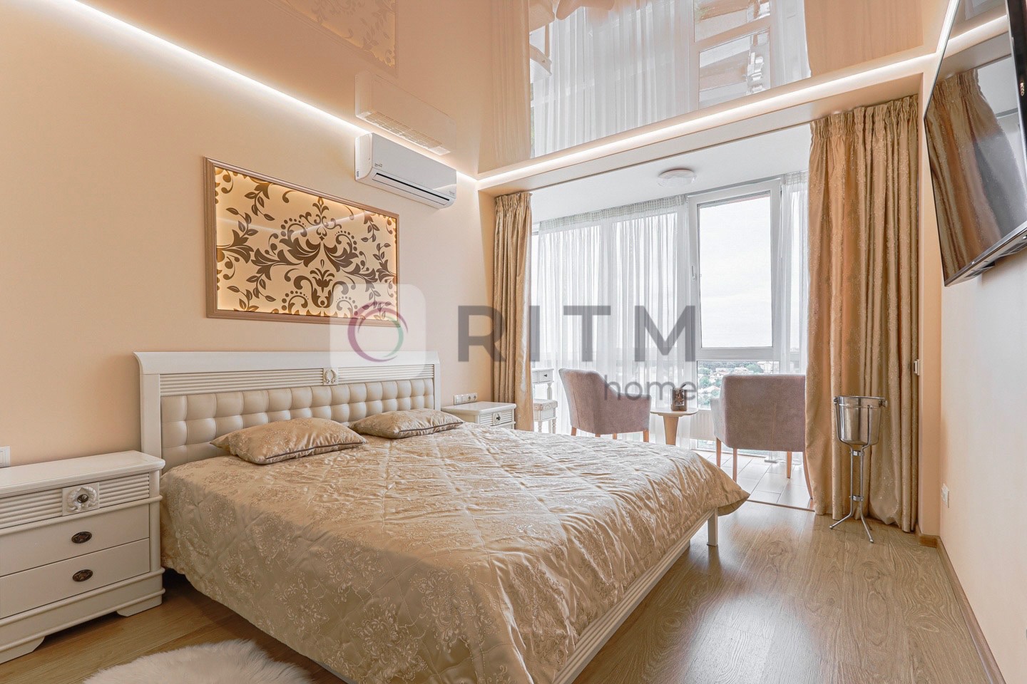 Додатково: домашній кінотеатр, багаторівневе освітлення, панорамний французький балкон + 2 відкриті балкони з виглядом на місто, декоративний сухий акваріум та бульбашкова панель.