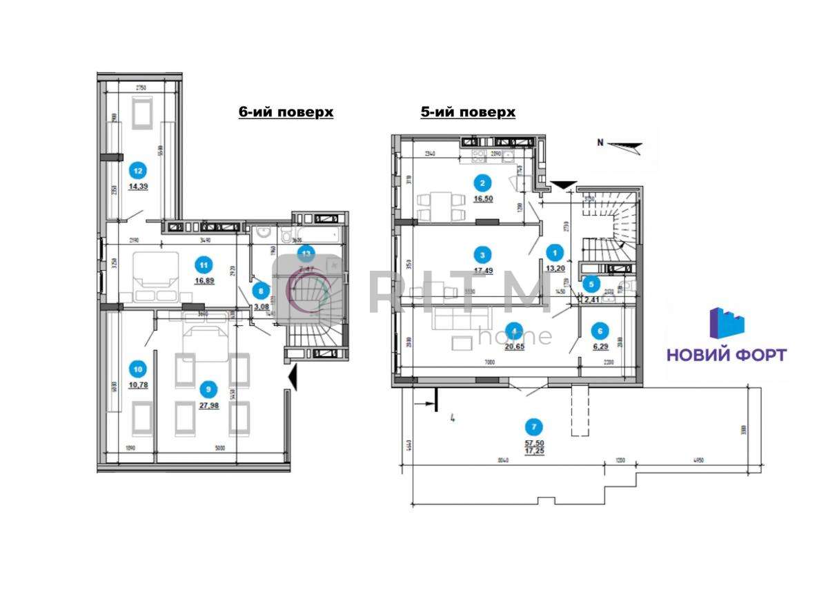 5й і 6й поверх + є місце під встановлення повноцінних сходів всередині квартири.
