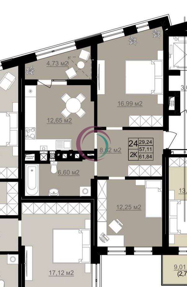 * Площа житлових кімнат — 29.24 м²