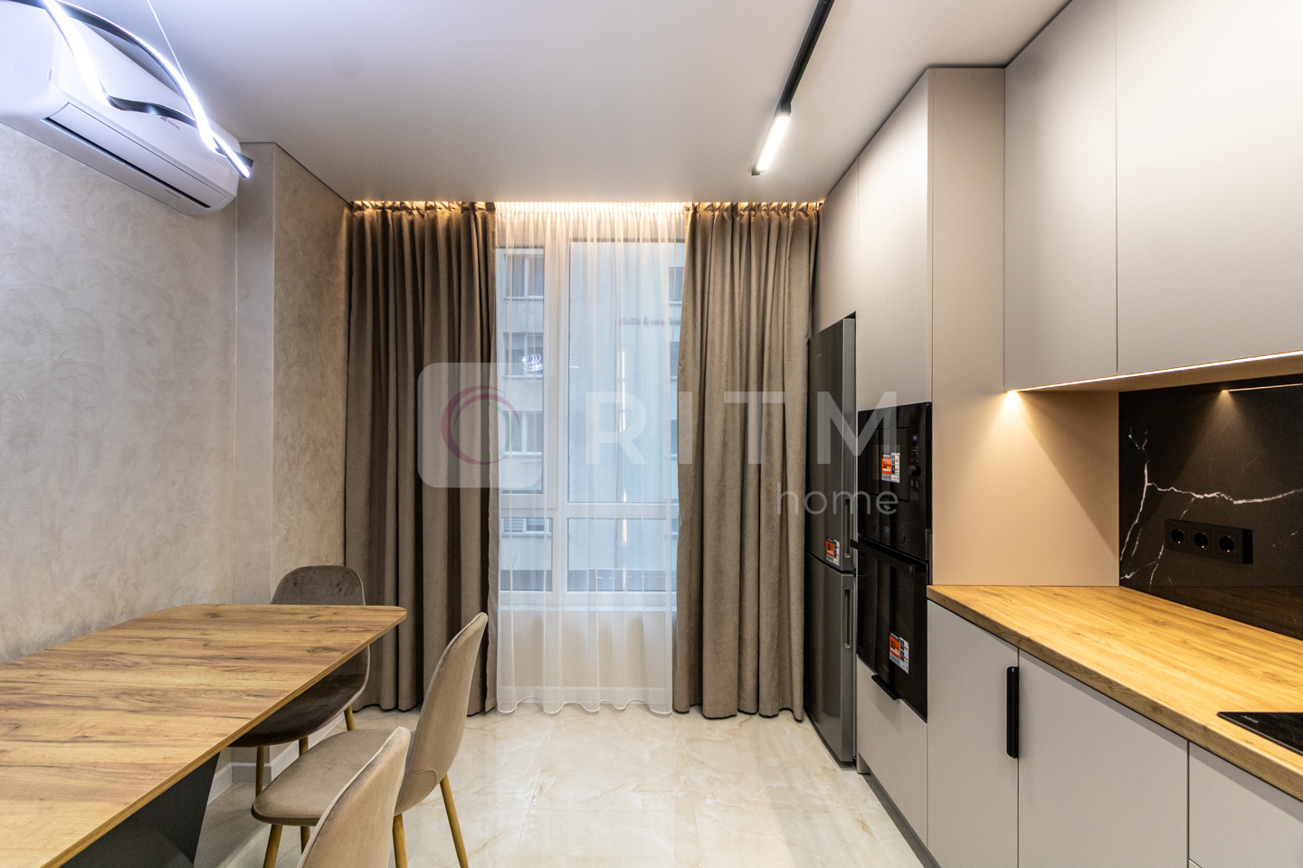 повністю облаштована кухня з технікою, додатково встановлені кондиціонер та посудомийна машина