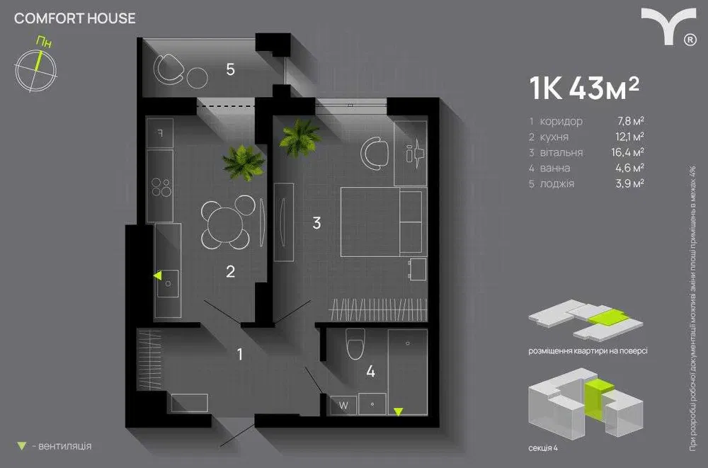 Продаж сучасної квартири 43 м² у перспективному районі