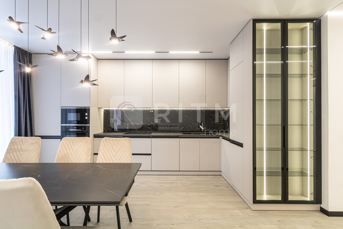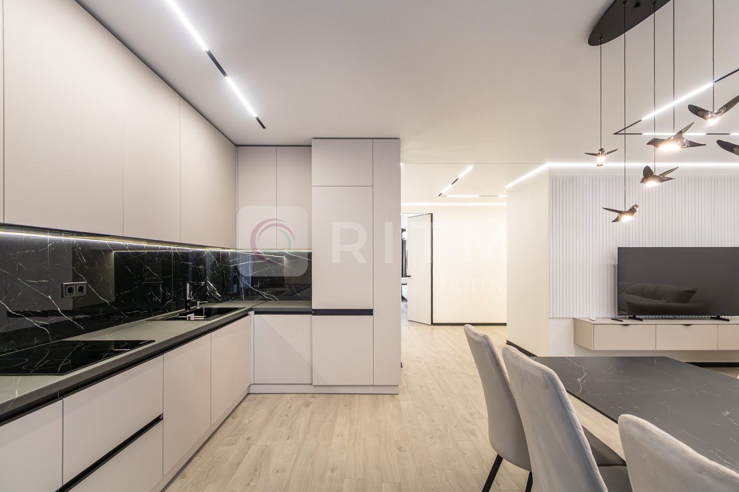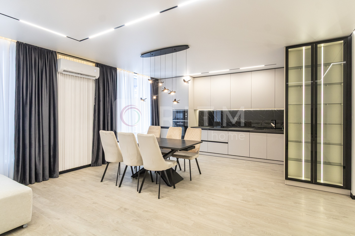 По всій квартирі встановлено підігрів підлоги. Продумане трекове та магнітне освітлення додає сучасності інтер’єру.