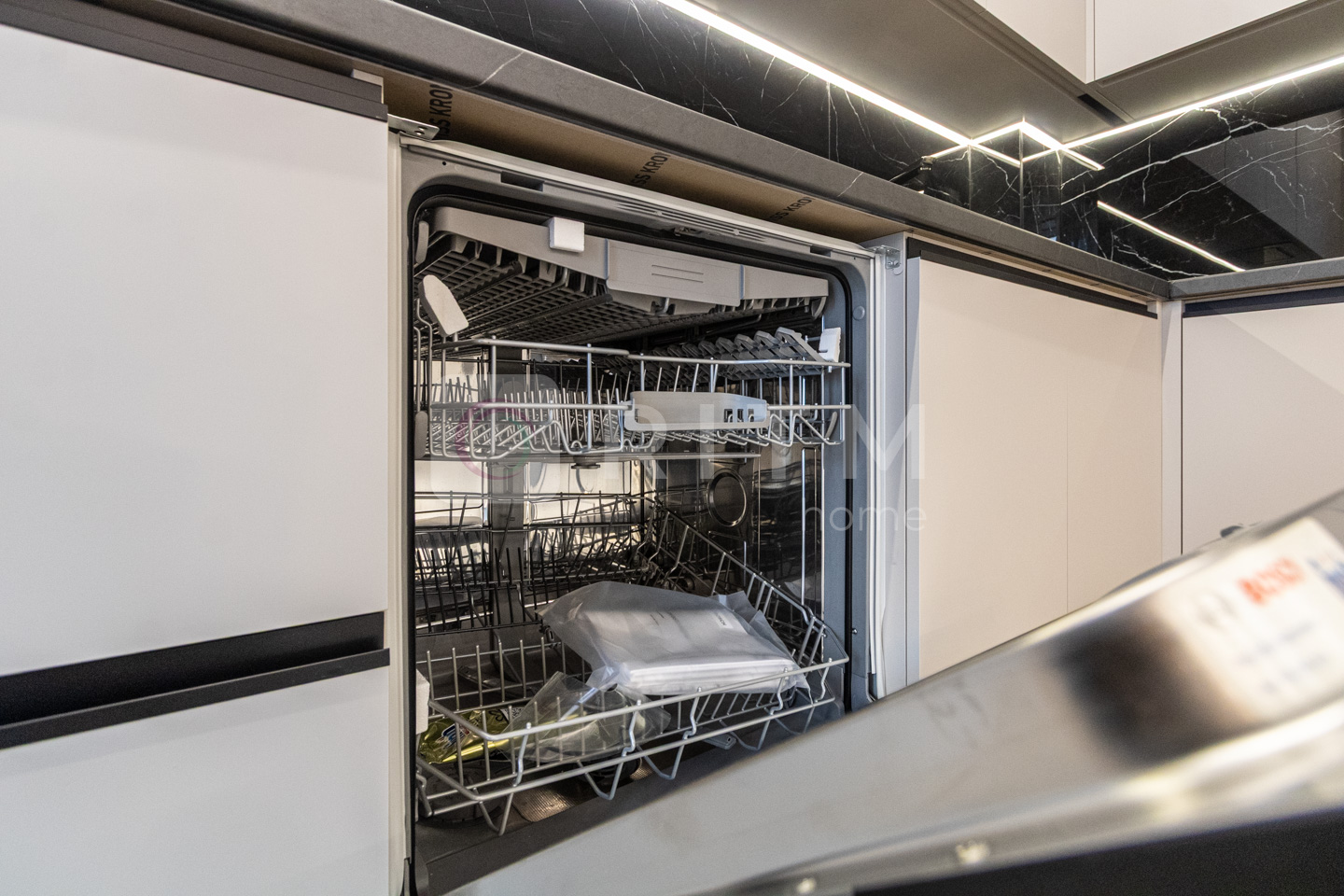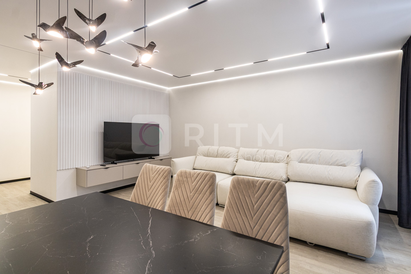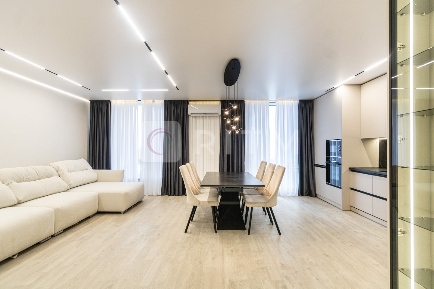 По всій квартирі встановлено підігрів підлоги. Продумане трекове та магнітне освітлення додає сучасності інтер’єру.