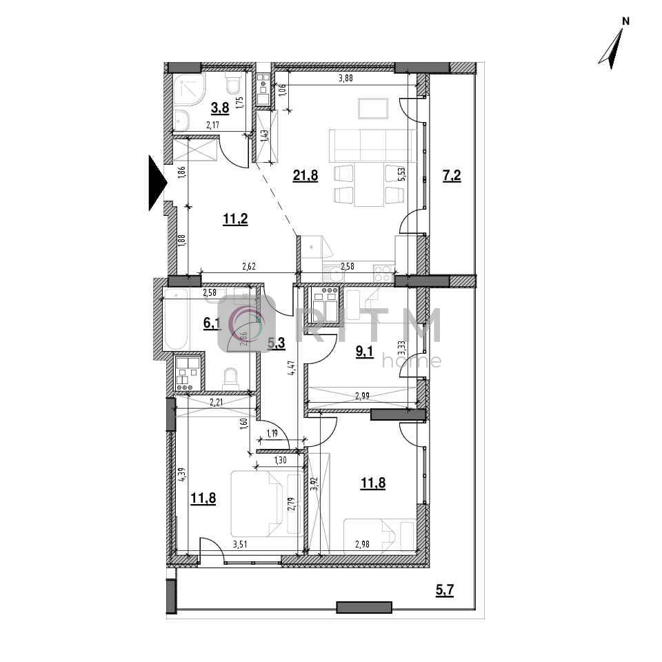 2-к. квартира площею 82.3 кв.м. у ЖК "Вільне Місто" за вул. Буйка