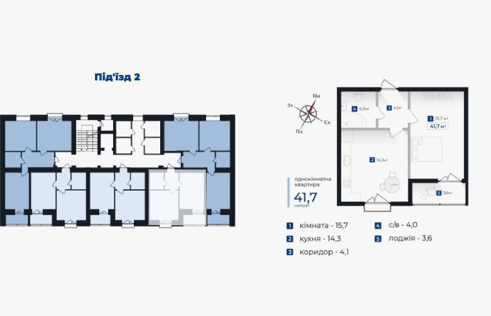 1-к. кв 42 кв.м у новому будинку ЖК «Козацький», на етапі здачі