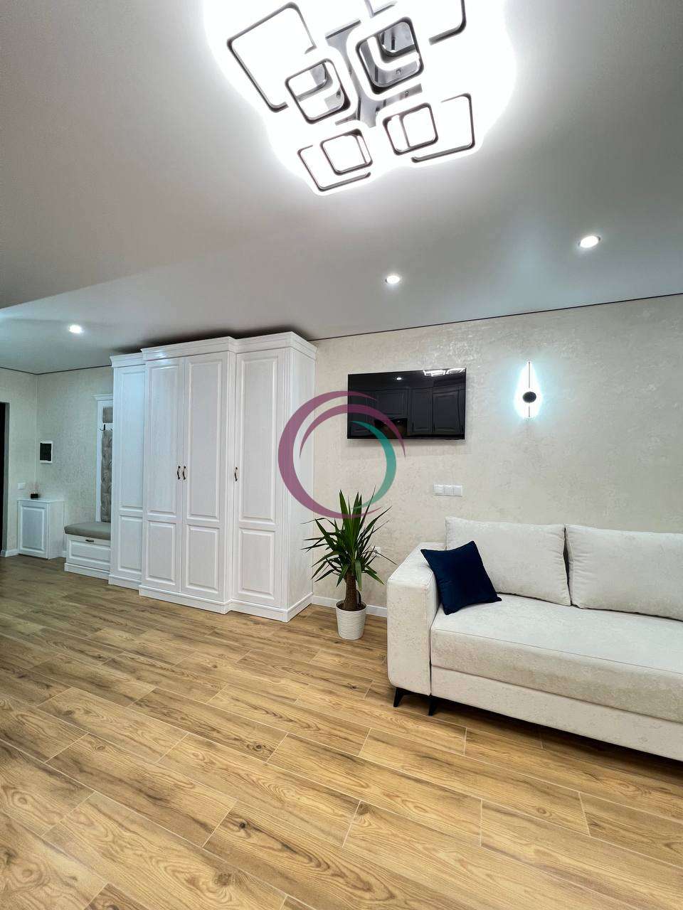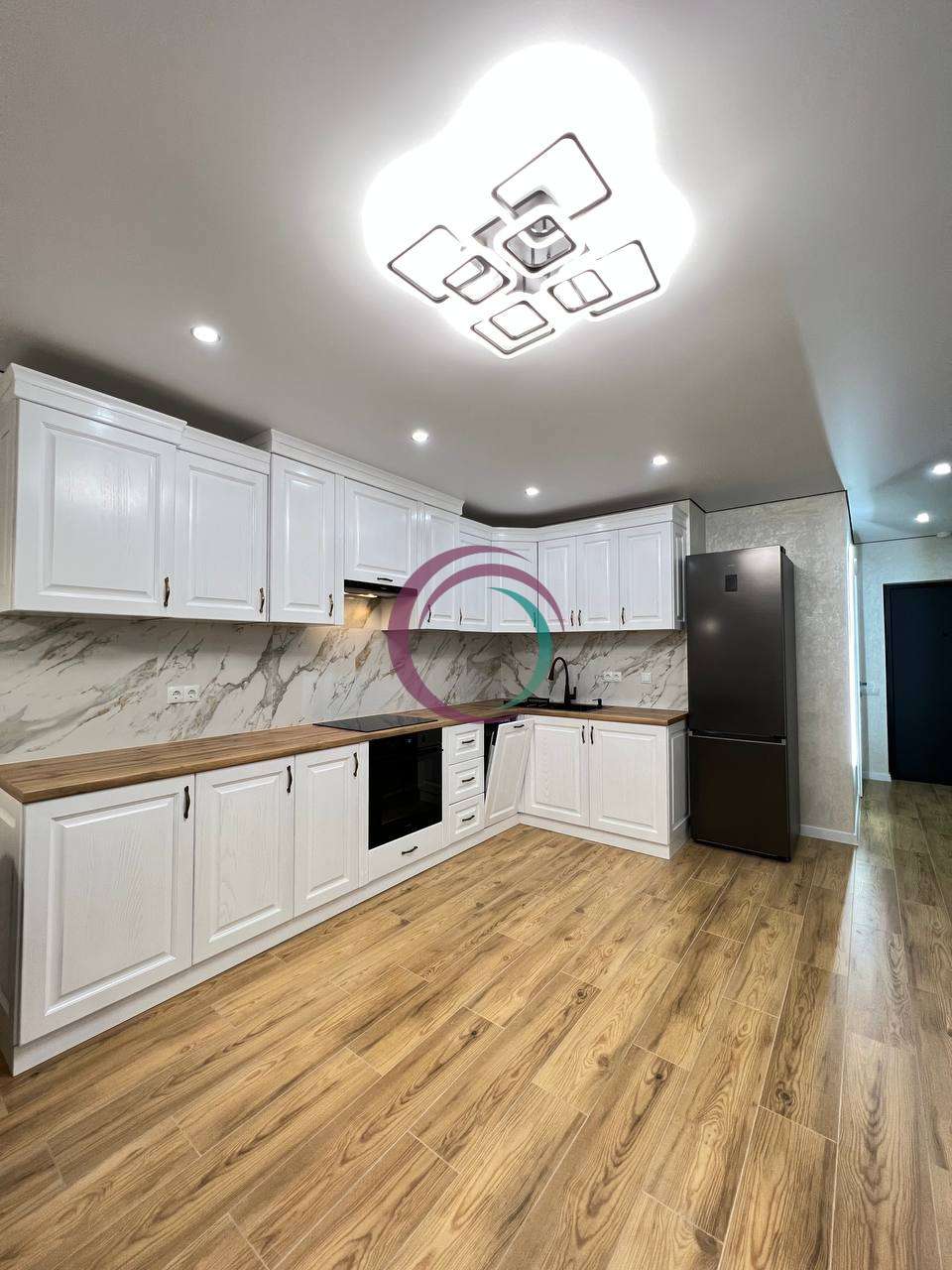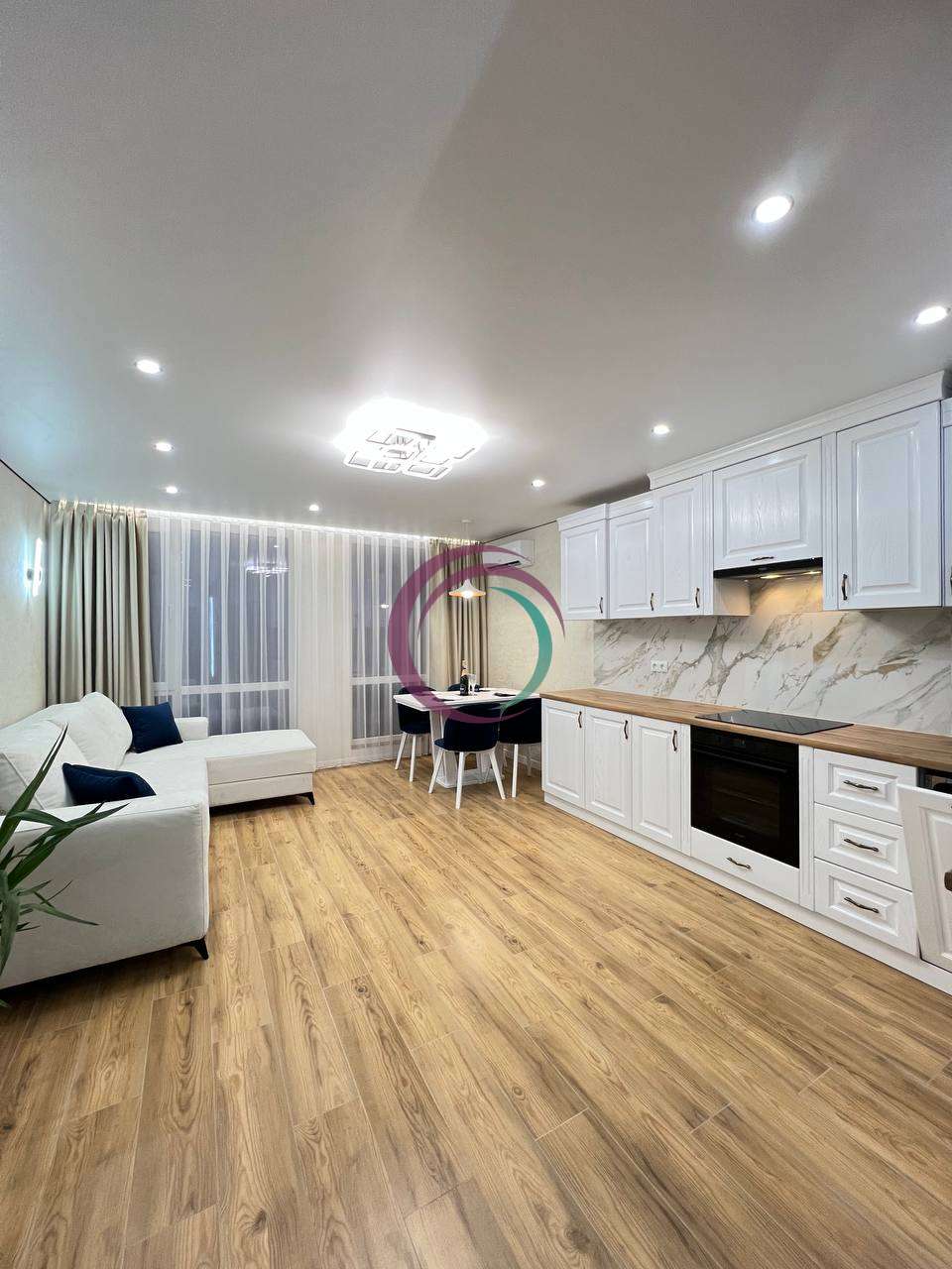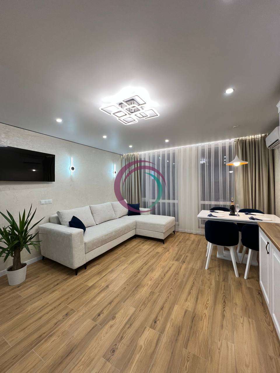 Квартира з якісним сучасним ремонтом, виконаним у стриманому та елегантному стилі.