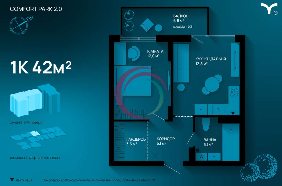 * Площа: 42 м²