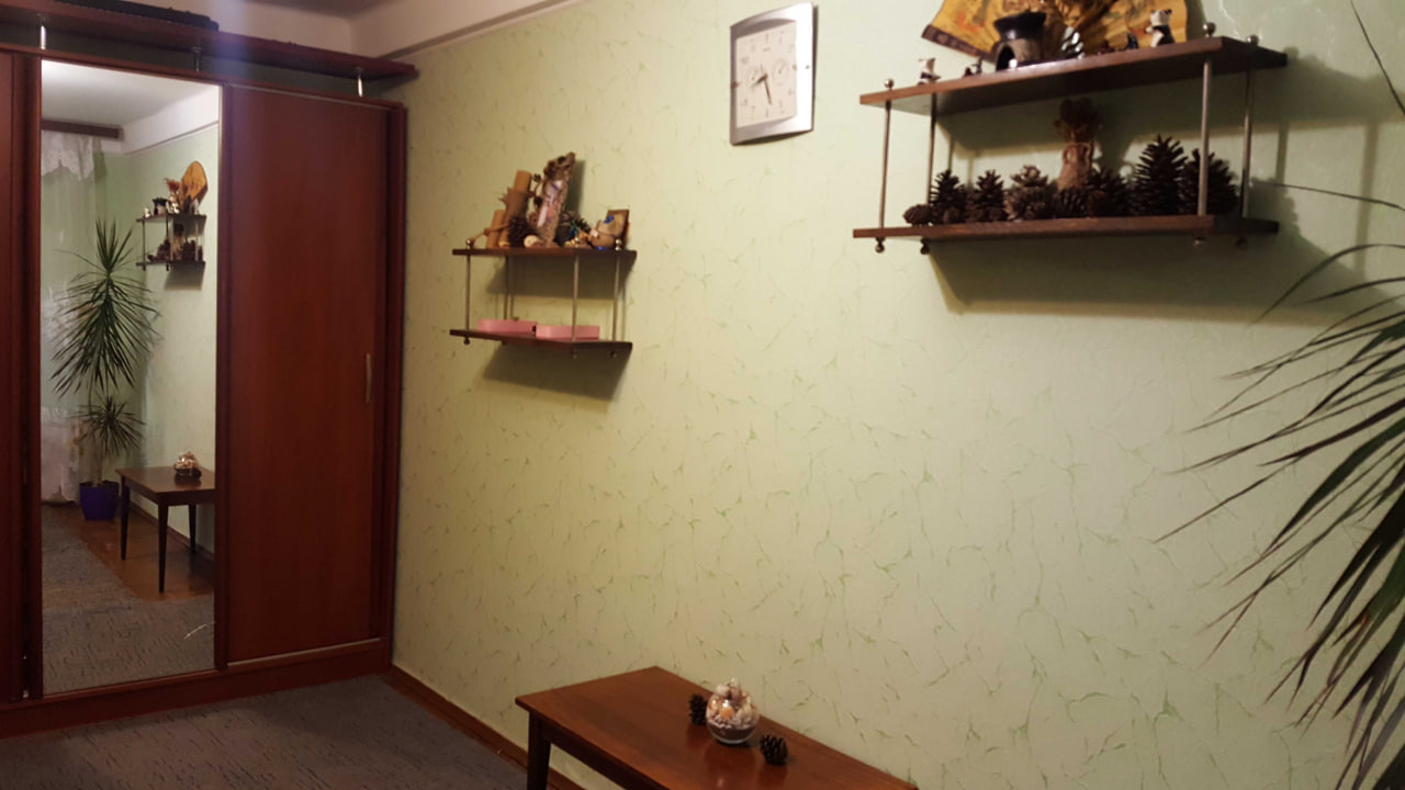 Квартира двостороння, ідеальне розташування кімнат, вхід в них з квадратного коридора-хола, дві довгі лоджїї вздовж обох сторін квартири. З двох кімнат, розташованих зі східної сторони будинку вихід на одну з лоджій, із західної сторони, де знаходиться третя кімната та кухня - вихід на другу лоджію з кімнати