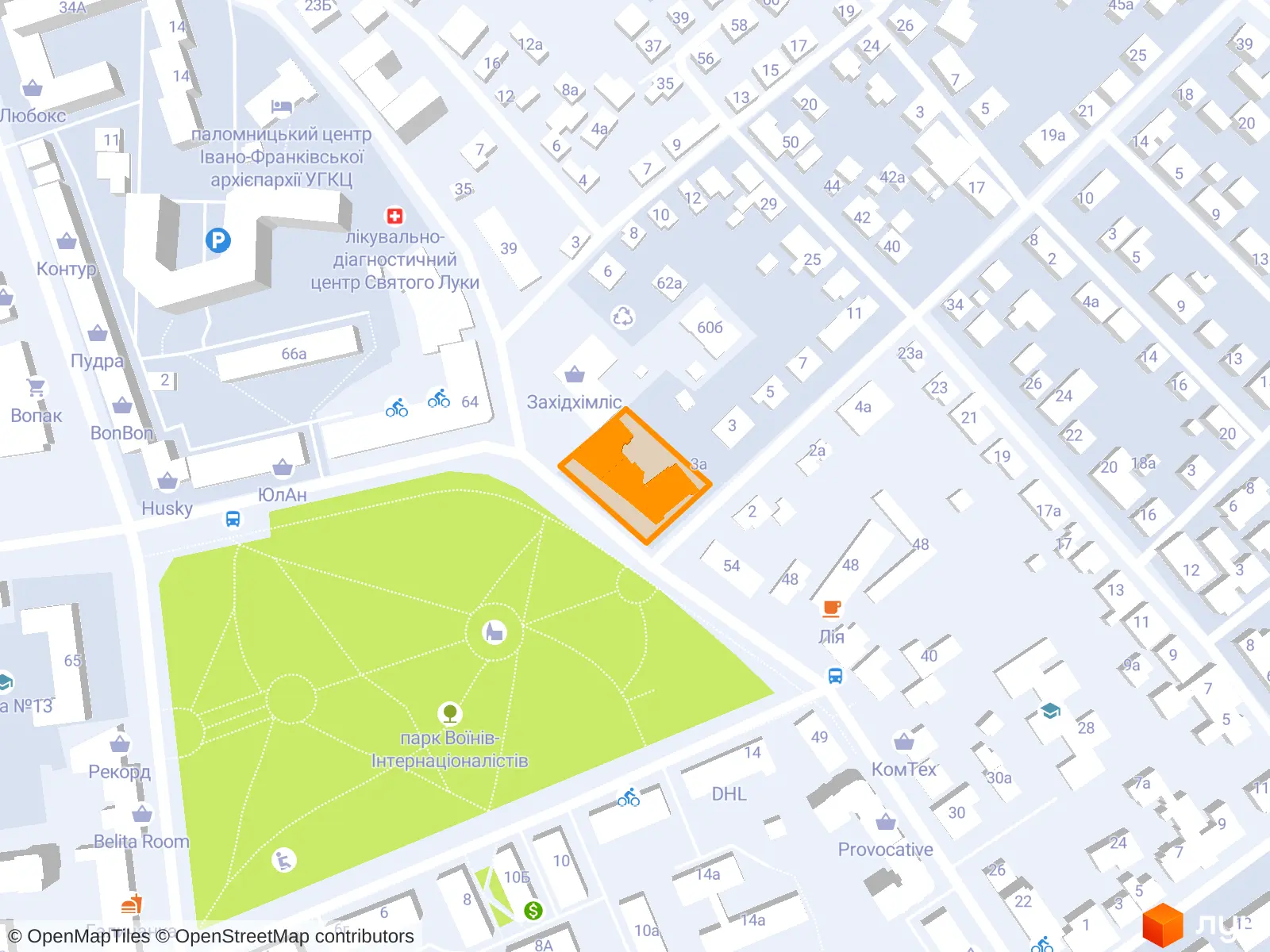 Через дорогу від будинку по вул. Гриневичів (Богунська), 1 розташовується великий парк Воїнів-Визволителів з доріжками для прогулянок і занять бігом, храмом і дитячим майданчиком.