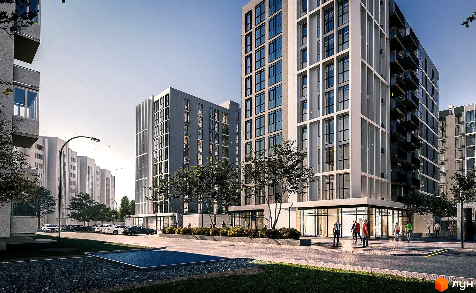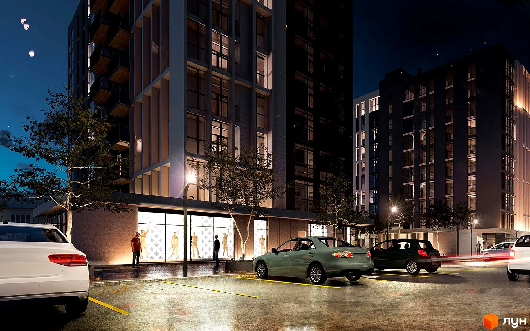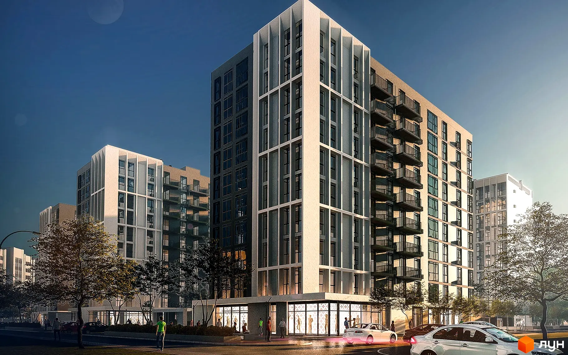 Найближчий до комплексу продуктовий магазин за 3 хвилин пішої ходи, а на відстані 3 хвилин автомобілем — супермаркет «Колібріс». За 7-8 хвилин від новобудови Центральний, Варшавський та Північний ринки міста. За промисловими товарами та розвагами можна поїхати в один з торгових центрів району: до ТЦ «Варшавський» та «Ювант» автомобілем 5 хвилин, до ТЦ «Слон» та «ПортSity» — 6 хвилин.