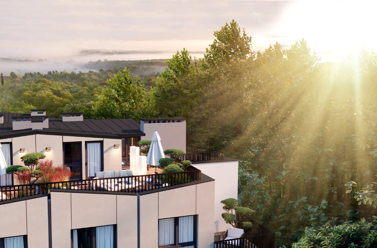 Клубний будинок має 4 поверхи та дворівневі квартири з терасами та видом на ліс, що робить проживання тут не лише зручним, а й естетично приємним. Він поєднав у собі одразу дві унікальні переваги: атмосферу спокою та затишку поруч із природою і близькість до ділового центру міста. Формат будинку такий, що абсолютно кожен почуватиметься тут затишно та комфортно: і молоді сім'ї, і старші люди, і діти, і індивідуалісти.