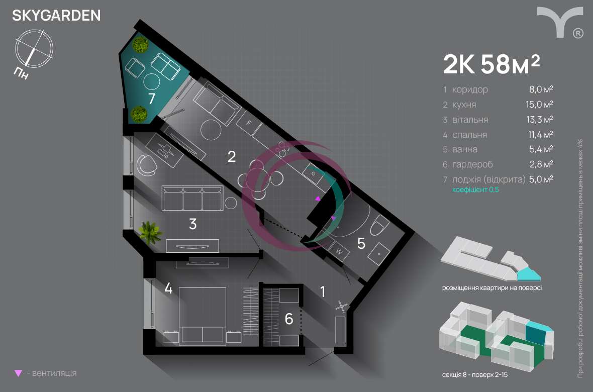 Загальна площа: 58 м2