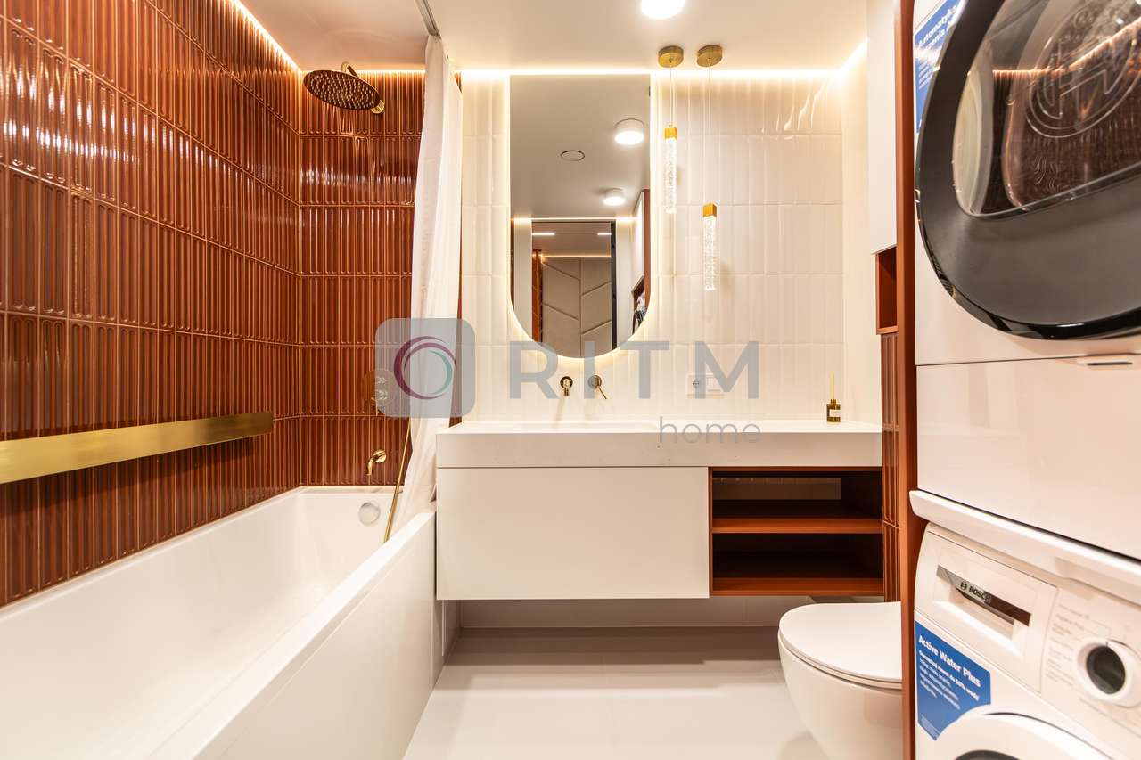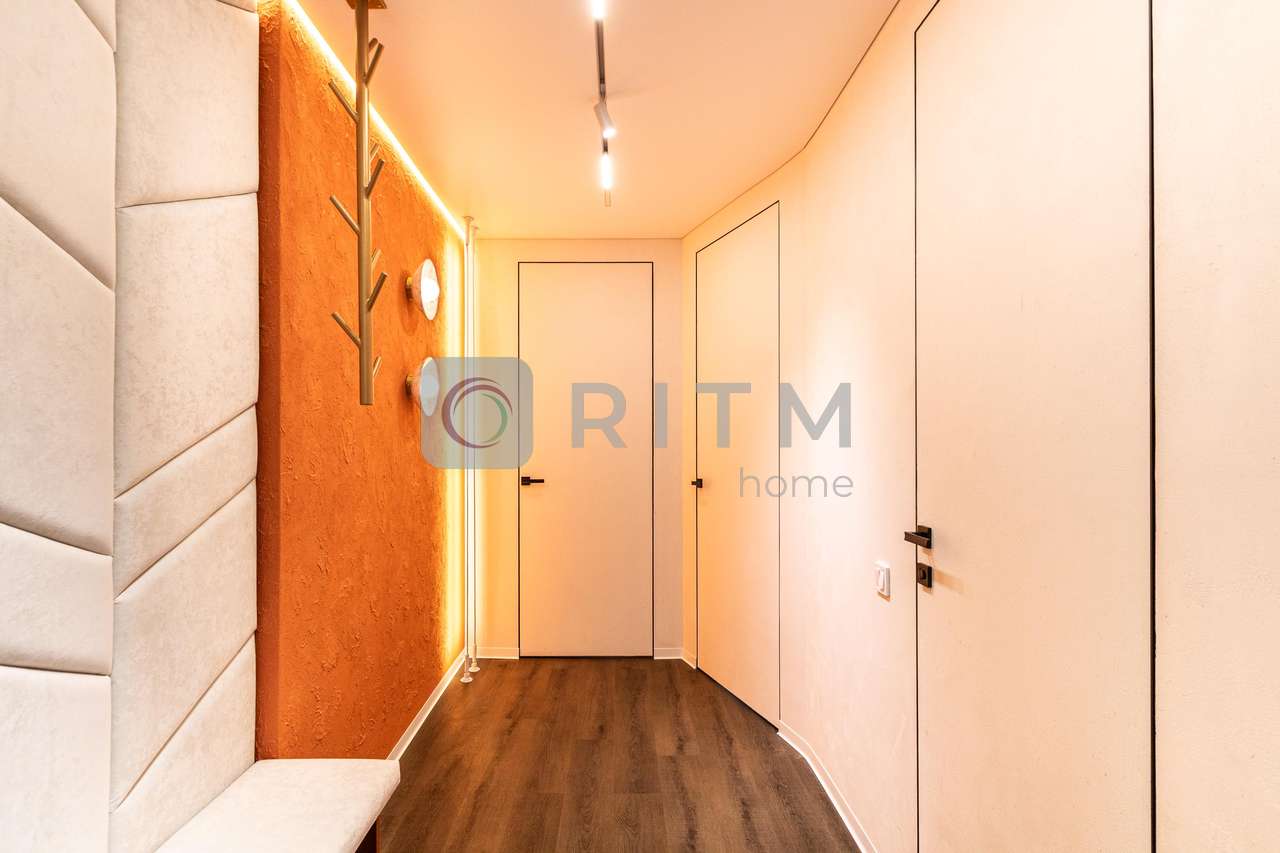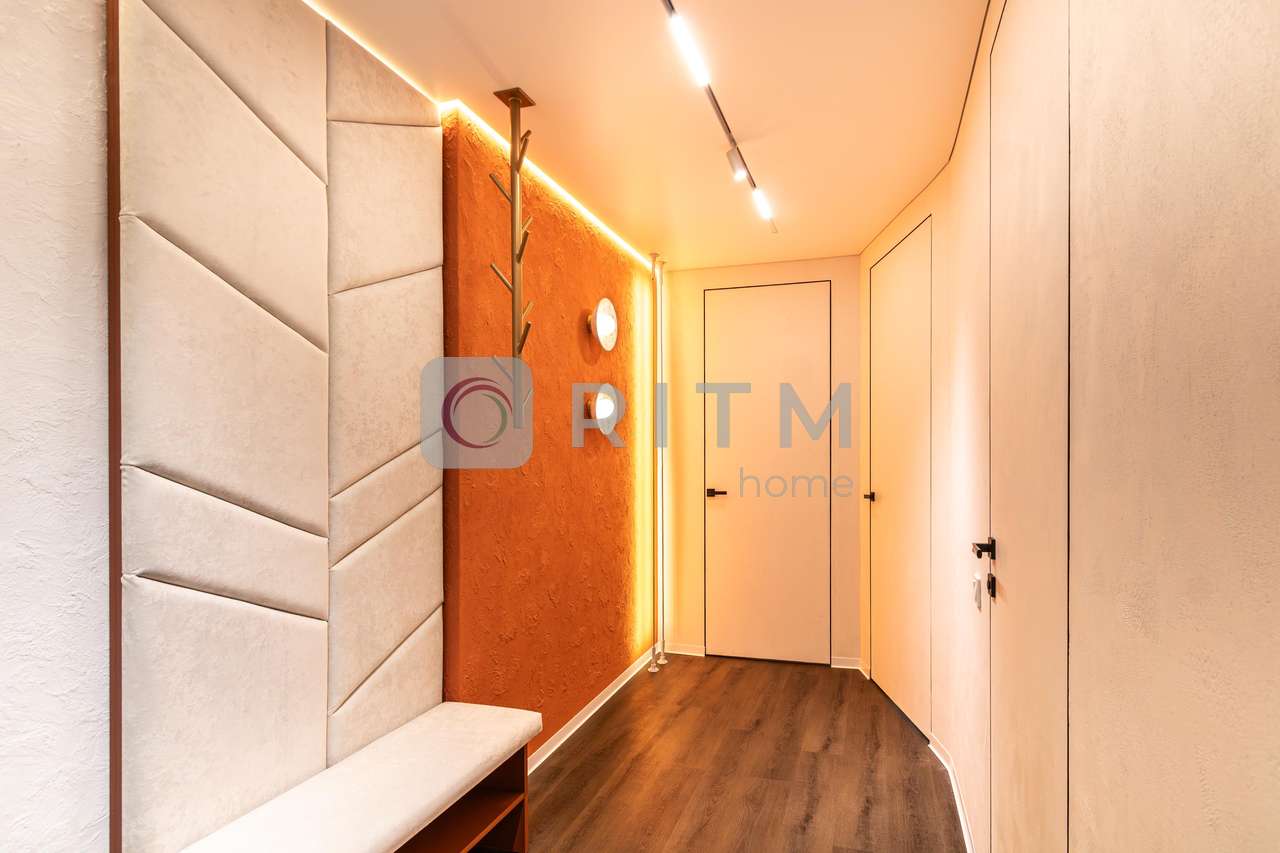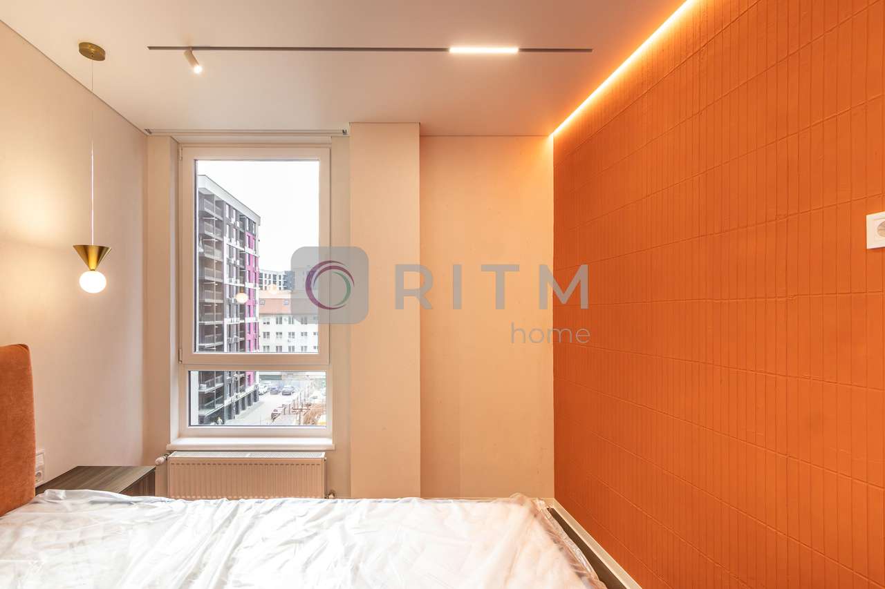 Родзинка квартири — унікальний помаранчевий стиль, який підкреслює сучасність інтер’єру та створює особливу атмосферу для любителів нестандартних дизайнерських рішень.