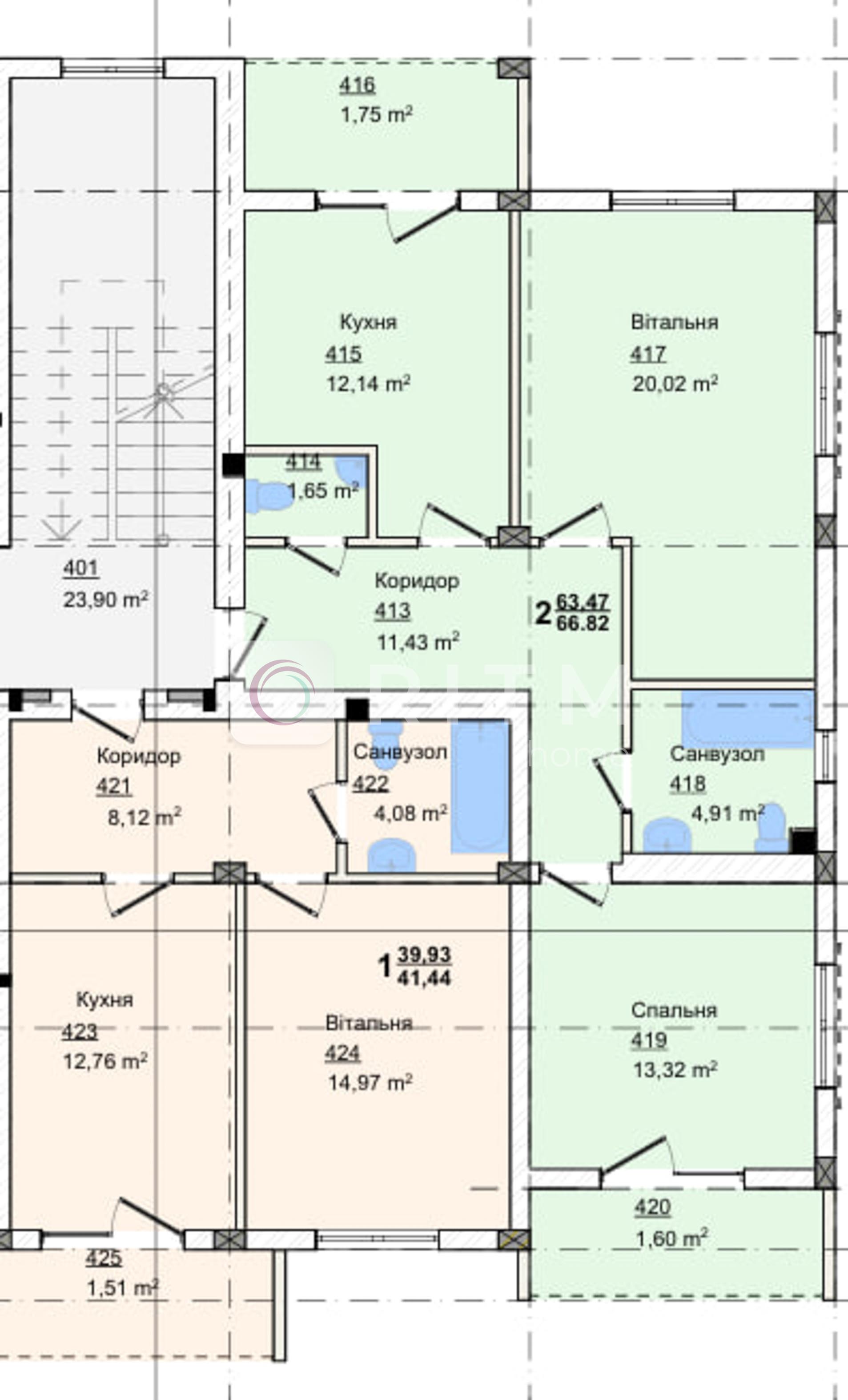 1-кімнатні: від 40 м² (ідеально для молоді або інвестиції).