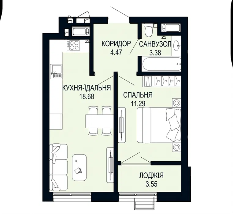 Квартира має площу 41, 37 кв. м, що ідеально підходить для комфортного життя. Під територією комплексу знаходиться підземний паркінг, а на території передбачений якісний благоустрій з ландшафтним дизайном.