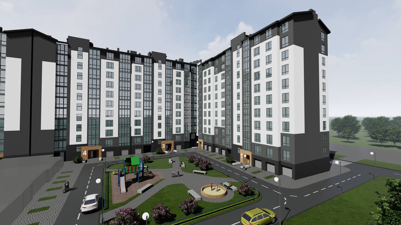 затишний двір із дитячим майданчиком та зонами відпочинку;