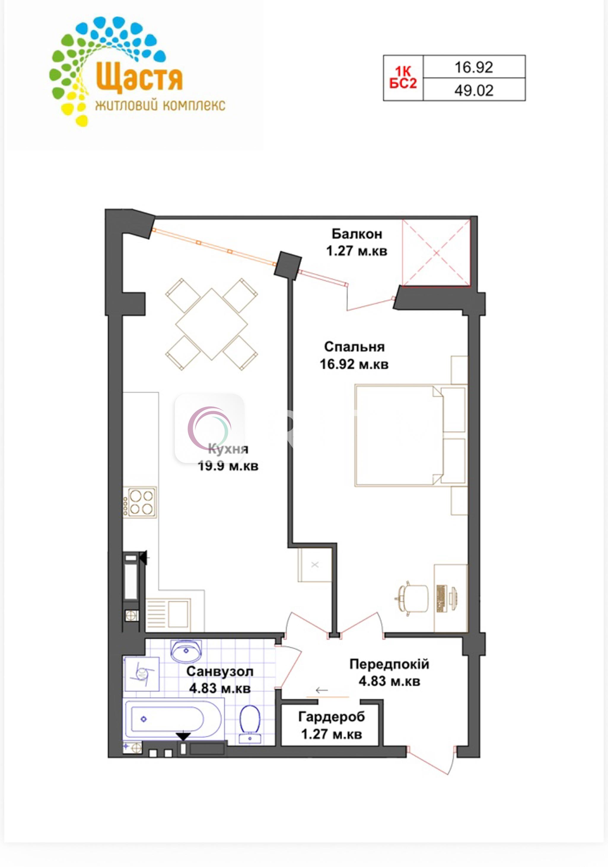 Продається 1 кімнатна квартира в ЖК Щастя