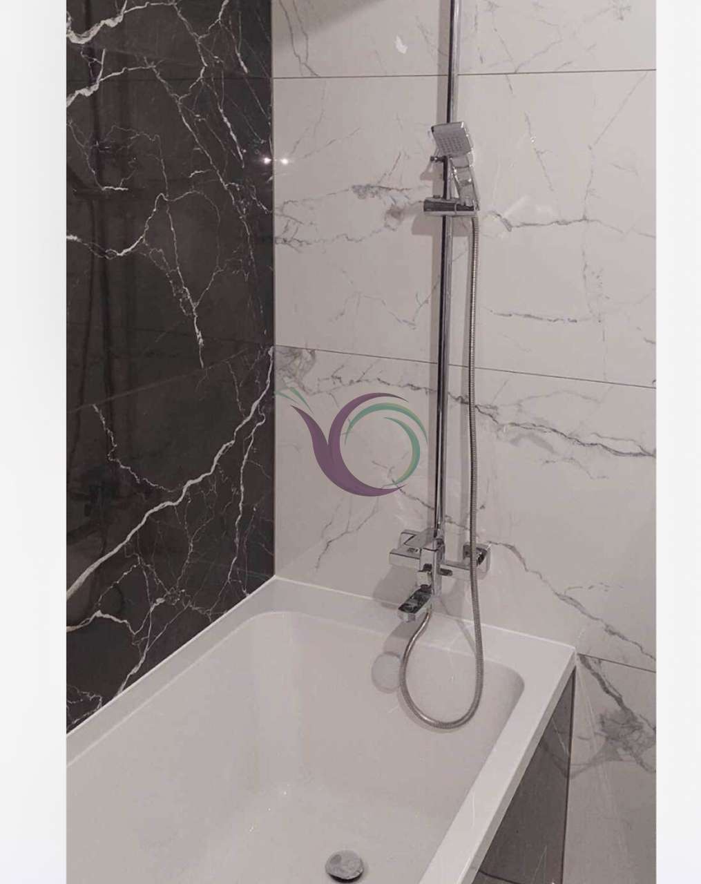 Роздільний, із сучасною плиткою та новою сантехнікою.