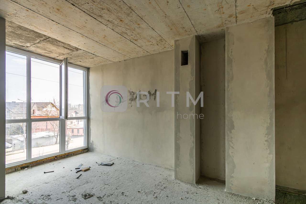 Квартира має продумане планування: велика кухня-студія та простора кімната, що дозволяє зручно зонувати простір під власні потреби.