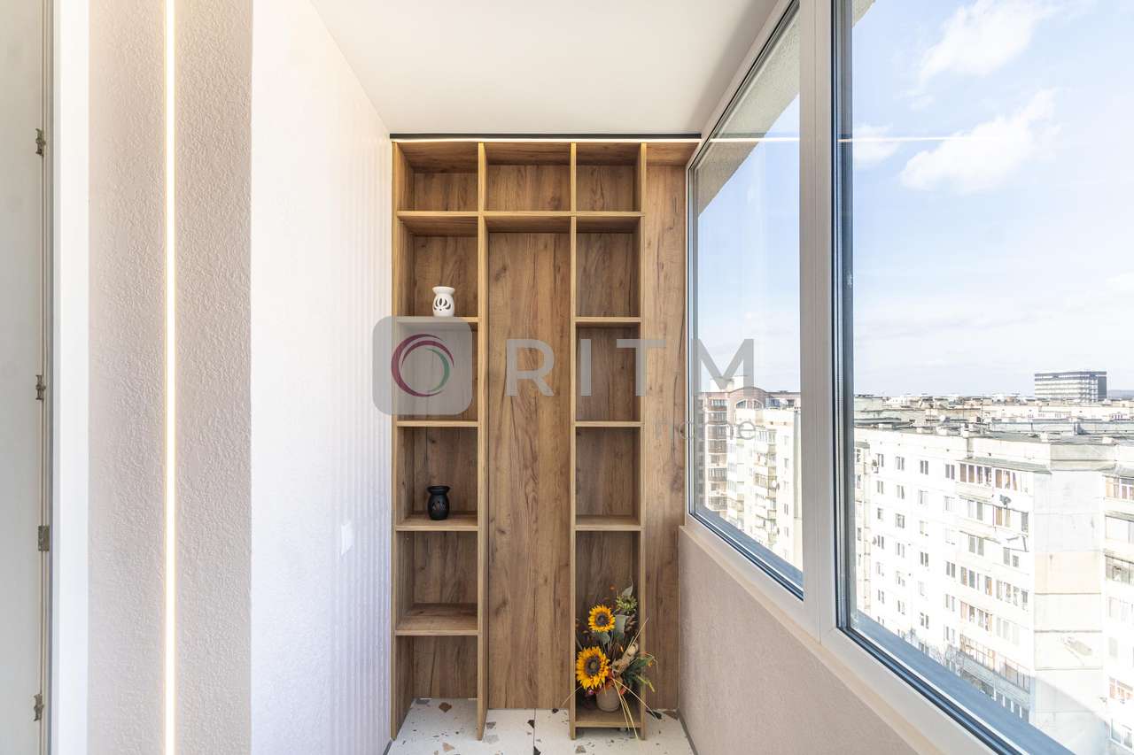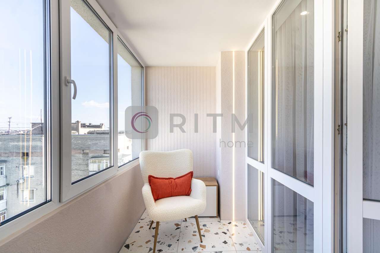 Балкон: засклений, перетворений на додатковий корисний простір (зона відпочинку/зберігання).