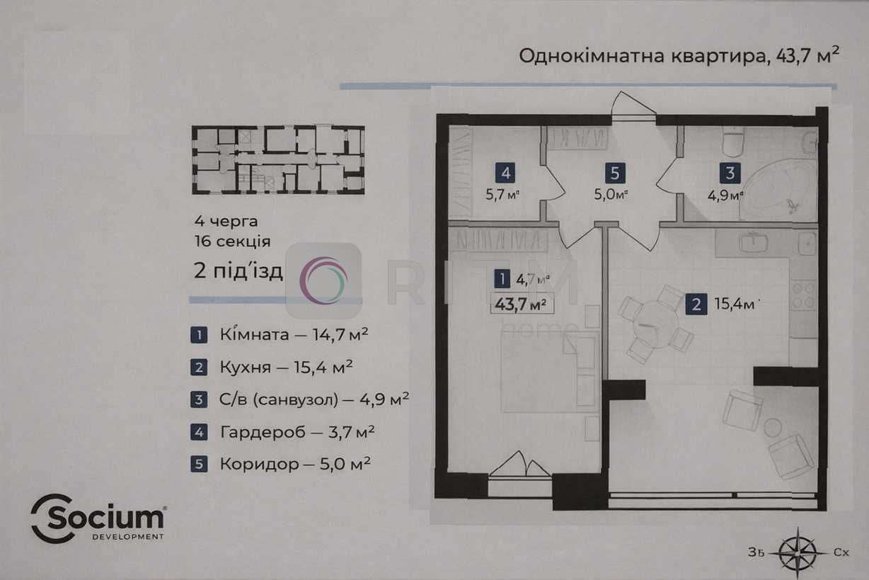 - 1 кімната