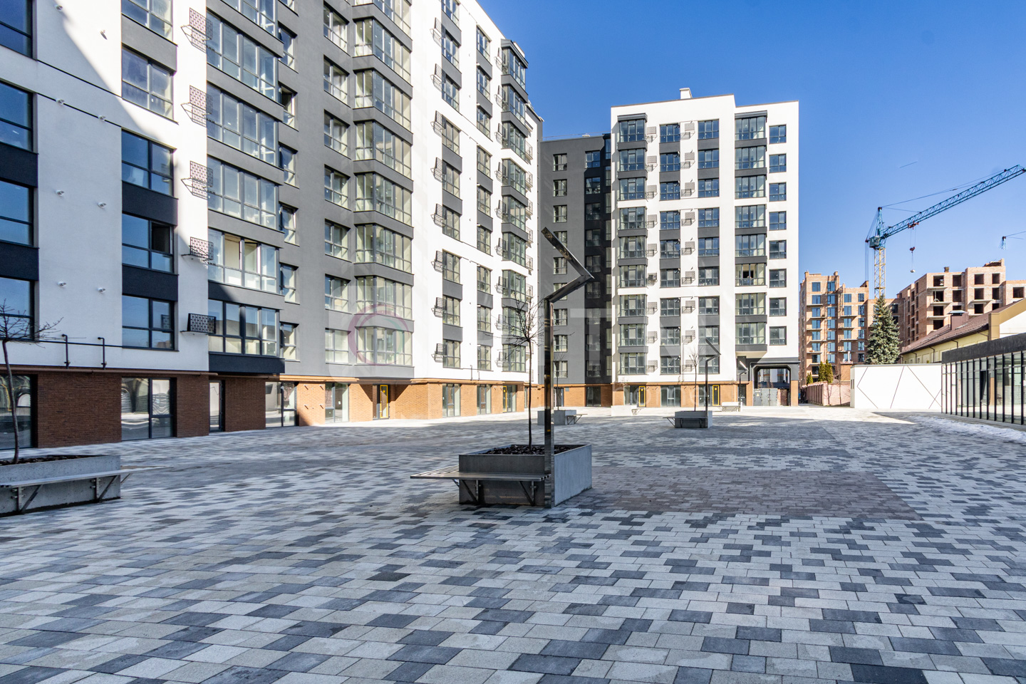 Будинок зданий, цегляний, із закритою від авто територією. Передбачено гостьовий та підземний паркінг. Простір навколо спокійний і впорядкований — без транзитного транспорту під вікнами.