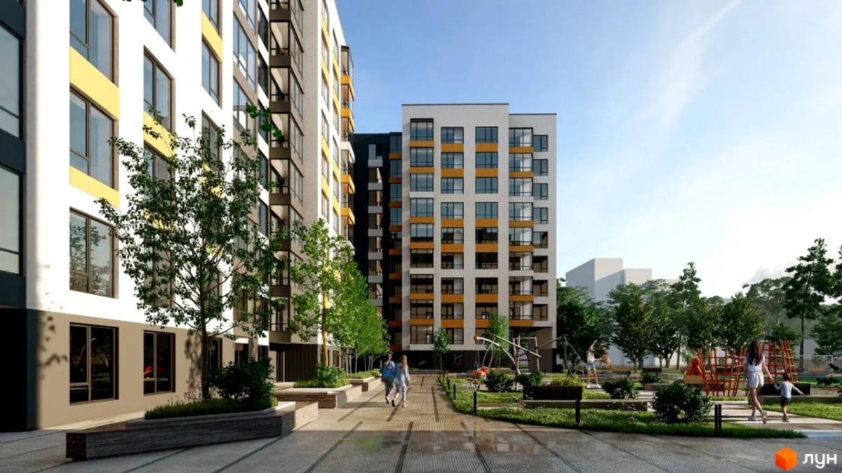 З вікон відкривається приємний вигляд у затишний двір — без зайвого шуму та з комфортною атмосферою для проживання.