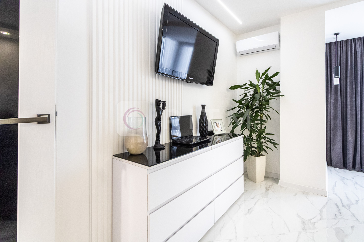 Квартира створювалася для себе, з максимальними вкладеннями, увагою до деталей, любовю та використанням якісних матеріалів. Продумане та зручне планування включає окрему гардеробну, а також окремий балкон де встановлений кондиціонера, що дозволяє зберегти естетику житлового простору.