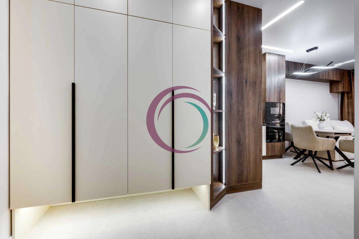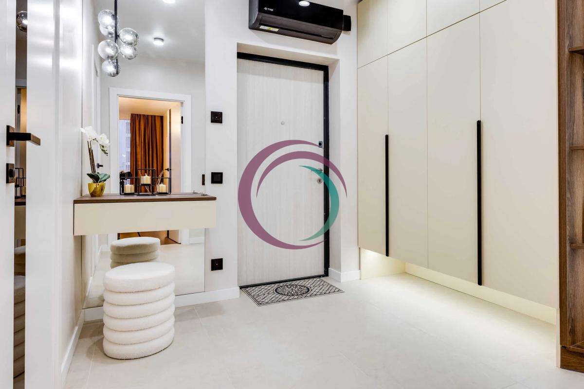 В коридорі - підігрів підлоги, велика гардеробна шафа, підключений кондиціонер.