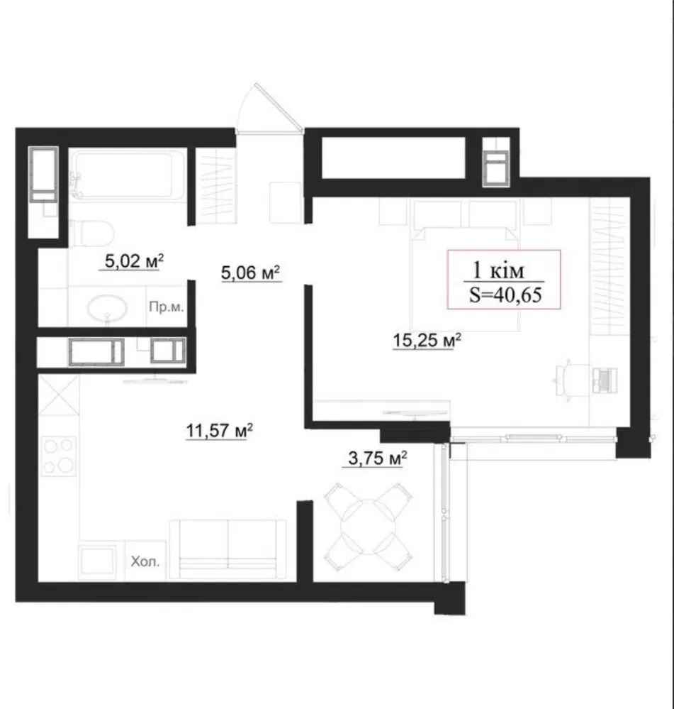 - 1 кімната