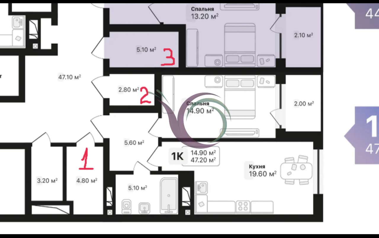 Загальна площа - 49м2