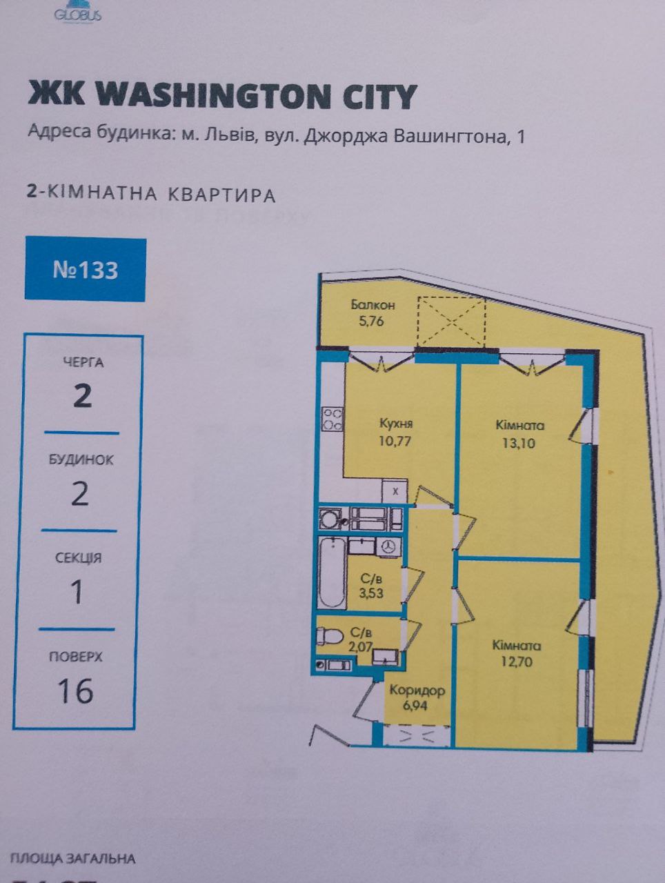 Продаж 2-к. квартири 60 м2 в ЖК Вашингтон Сіті БЕЗ КОМІСІЇ