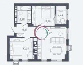 кімната 1 12, 3 м. кв.
