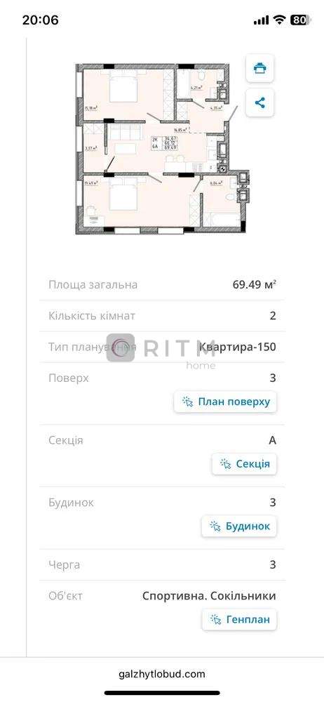 - площа 69,49 м2