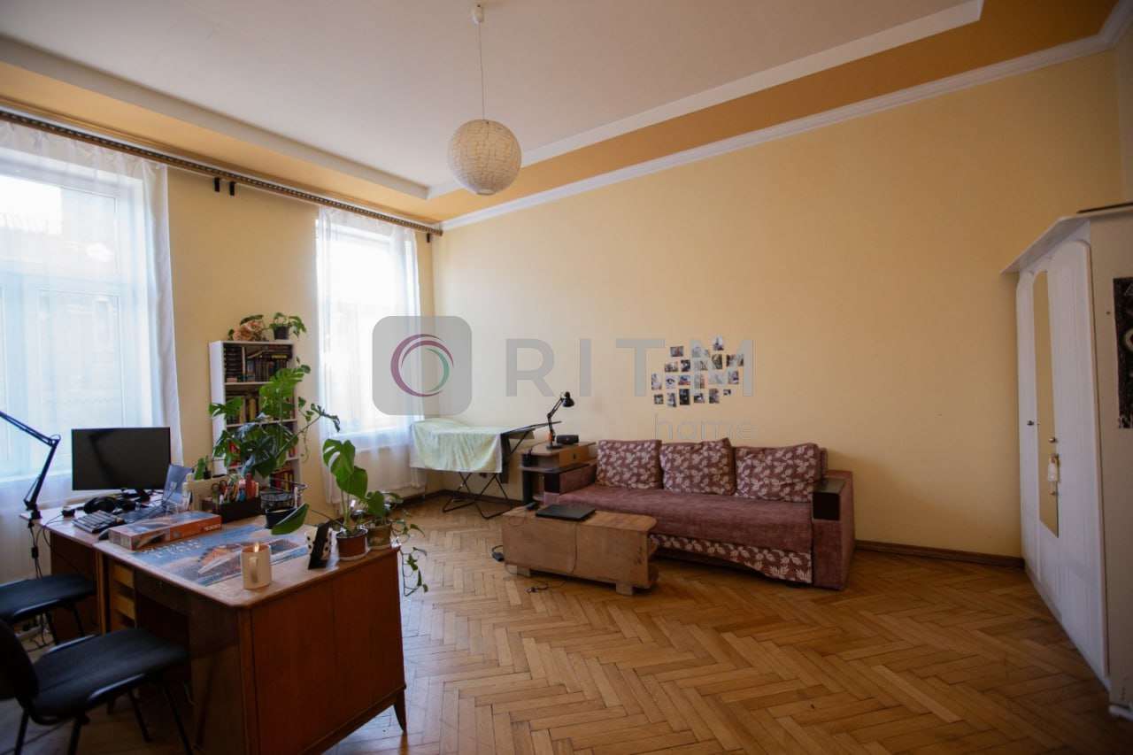 В квартирі ремонт, кімнати суміжні, вигоди окремо, своє опалення (двофункційний котел), дах перекритий не тече, три квартири на поверсі, відреставровані міжкімнатні двері, п'ять хвилин до Оперного. Поруч ринок, супермаркет, парк.