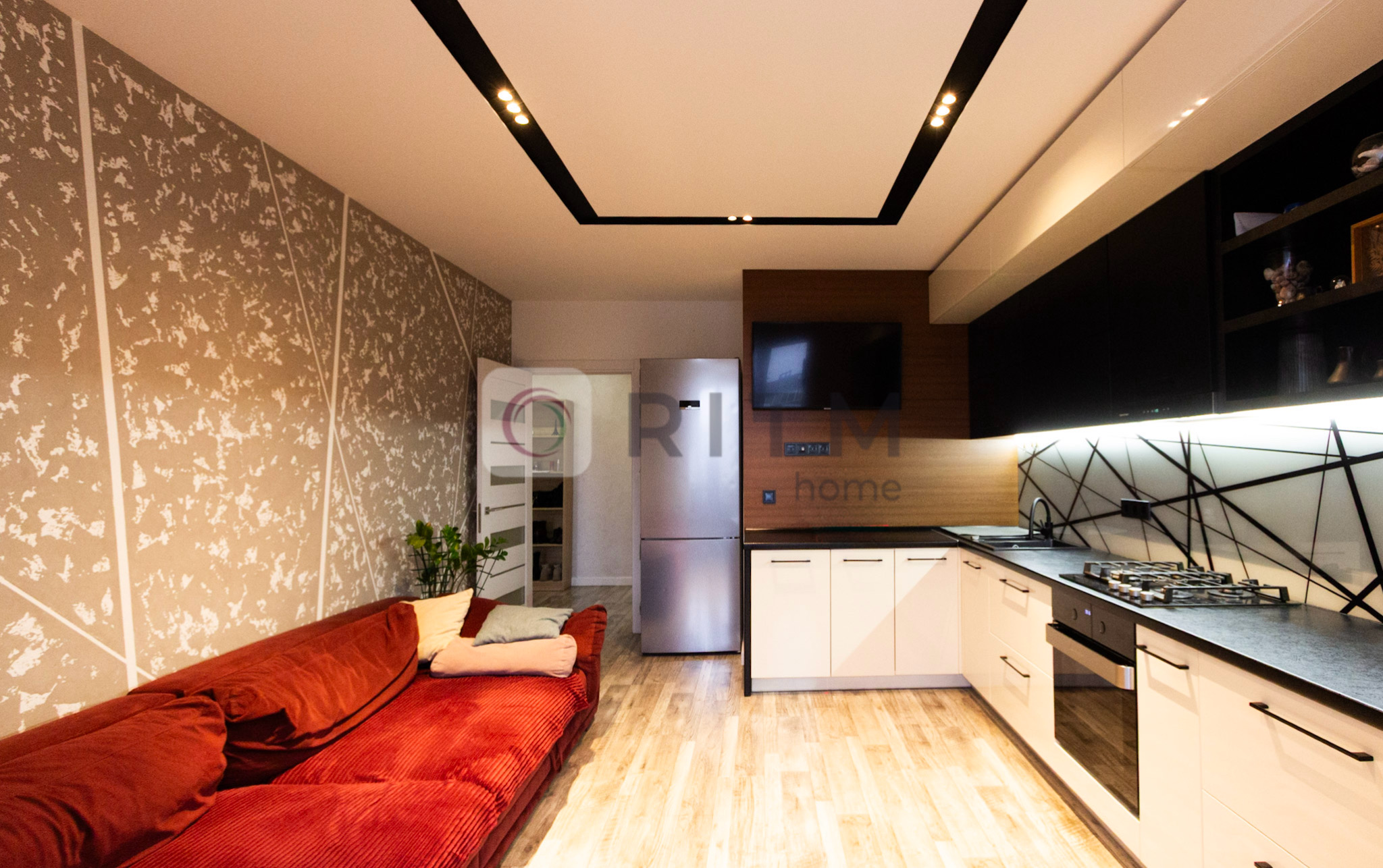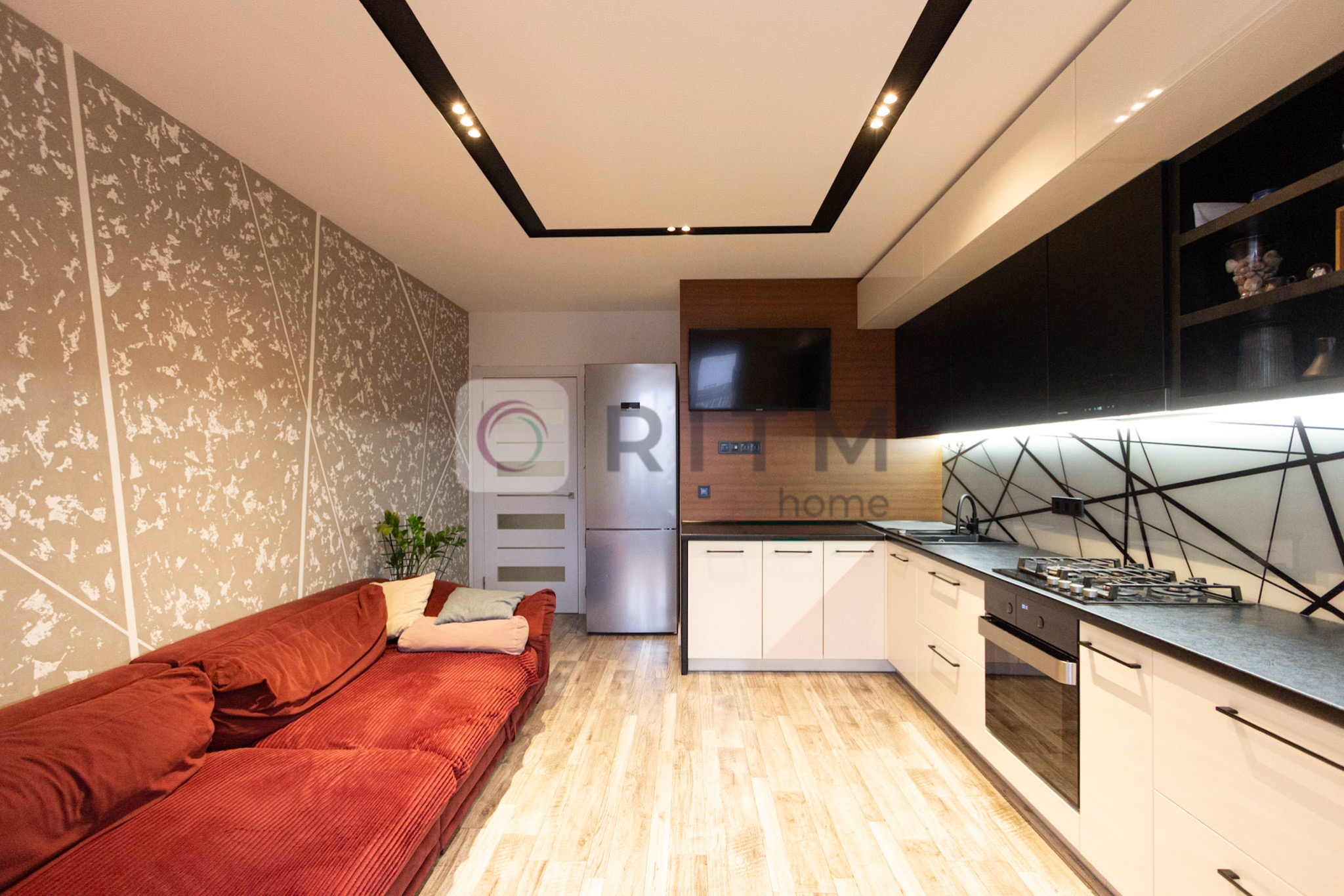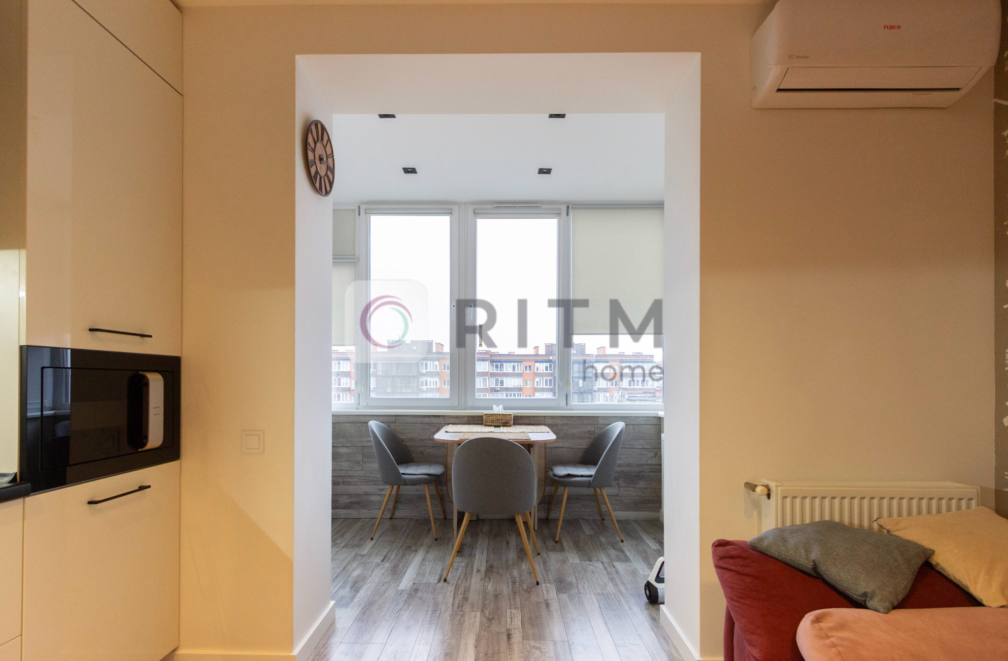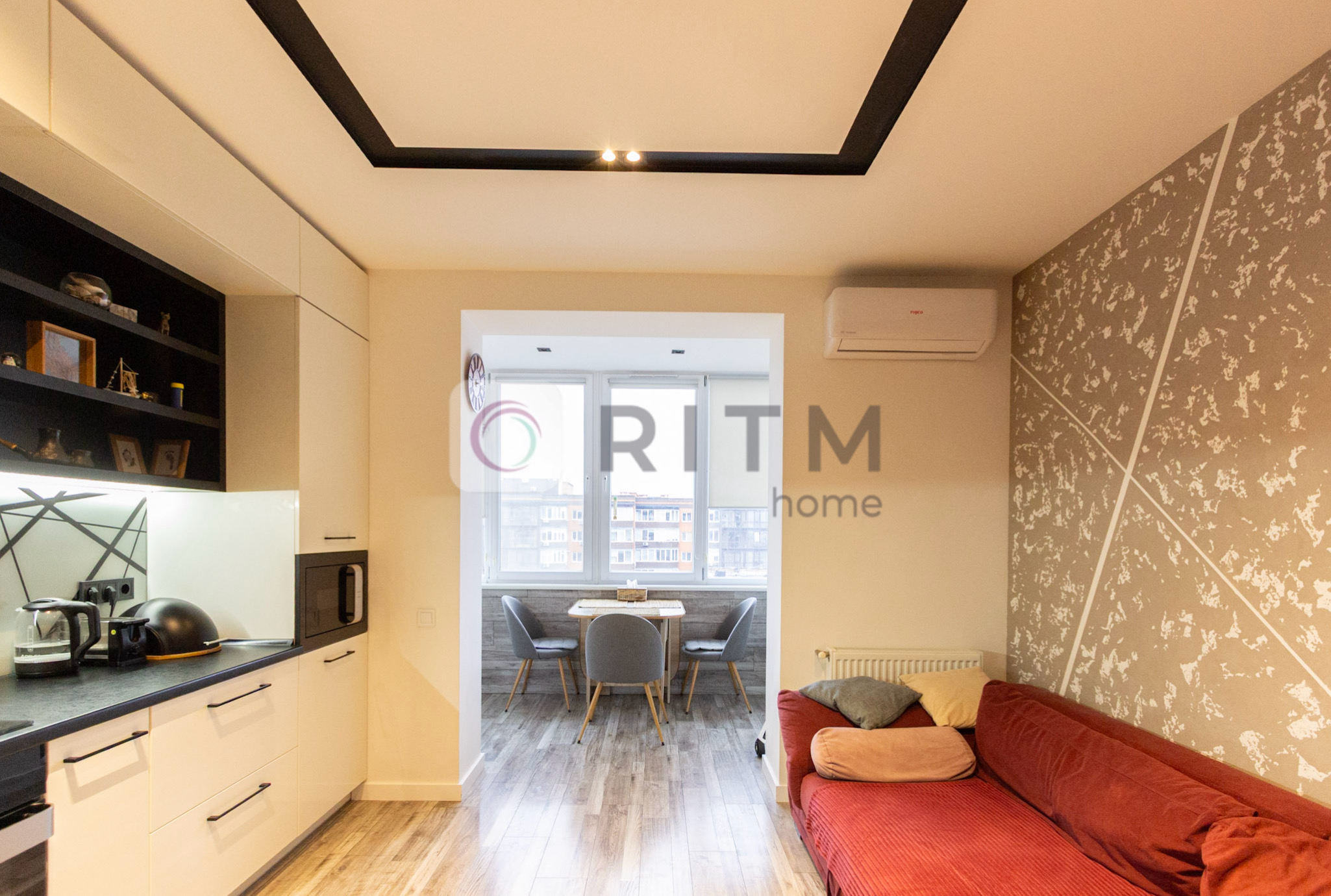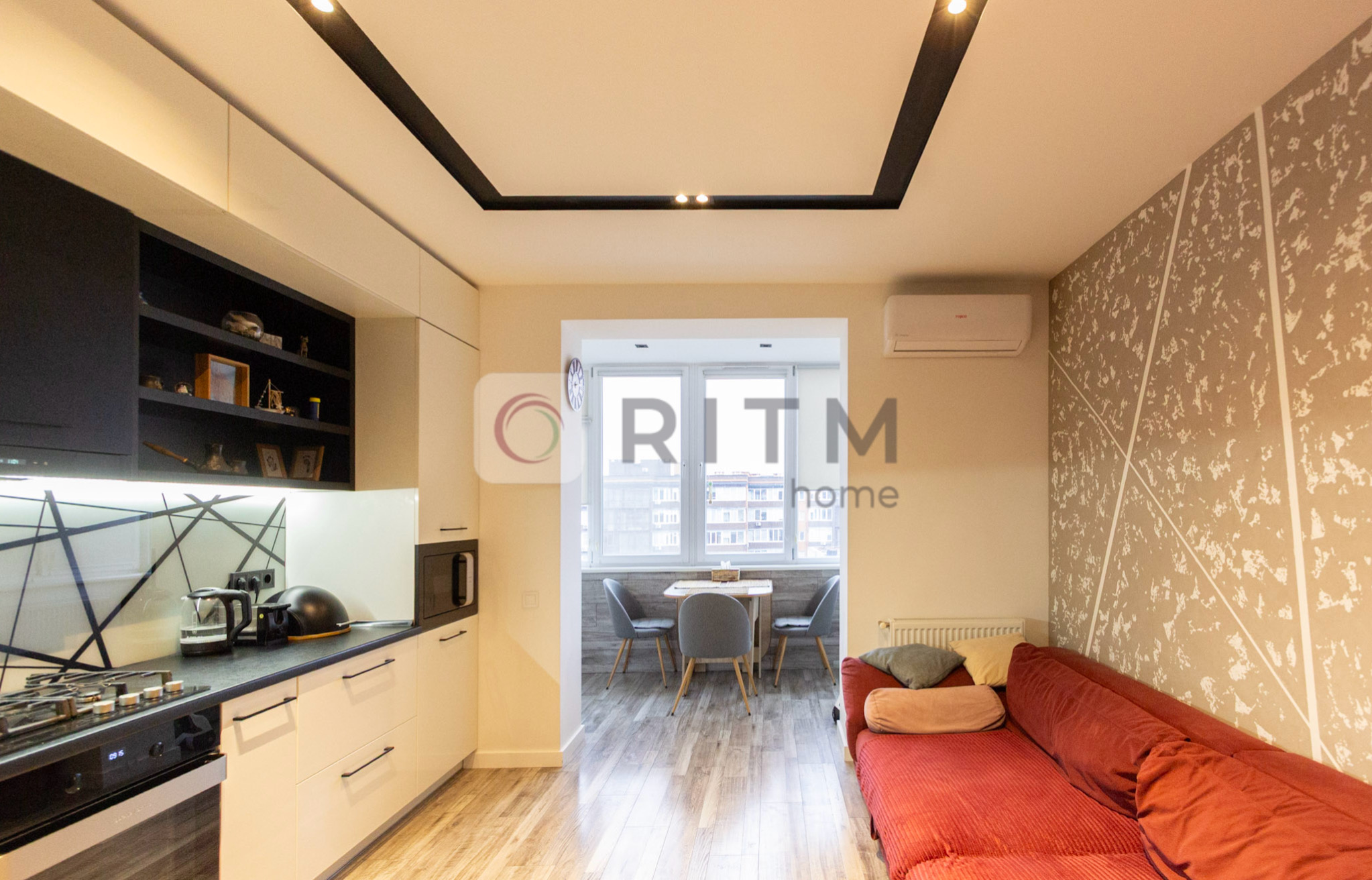 Квартира двостороння (схід/захід), що забезпечує гарне природне освітлення протягом усього дня. Виконано сучасний ремонт із продуманим переплануванням. Простора кухня-студія з виходом на лоджію створює комфортну обідню зону з виглядом у внутрішній двір.