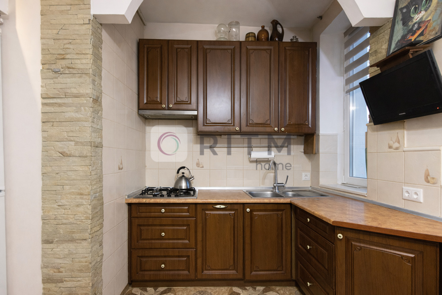- Оснащена всією необхідною побутовою технікою: пральна машина, духовка, газова плита, мікрохвильова, телевізор тощо, все залишається;