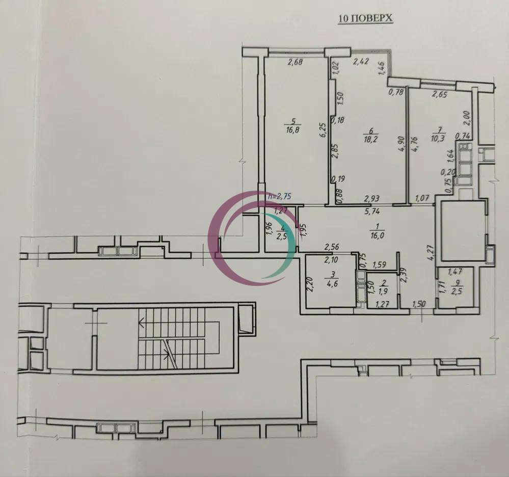 • Висота стелі — 2,75 м