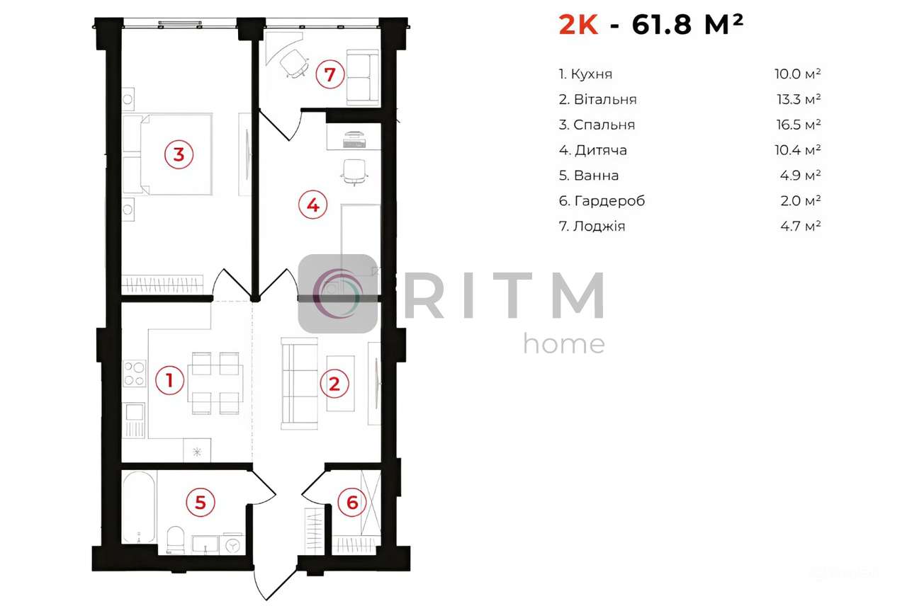 • дві роздільні кімнати