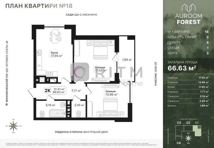 Продаж 2к квартири 67 м2 біля лісу в новобудові в ЖК AUROOM FOREST