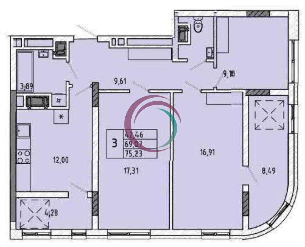 Продаж 3-к. квартири 75 м2 у ЖК на Миколайчука 38