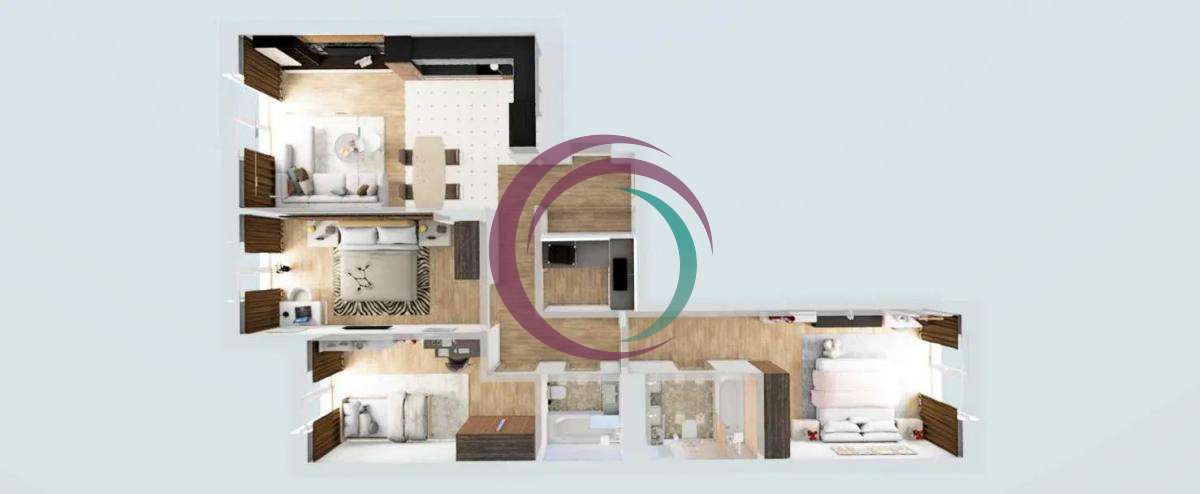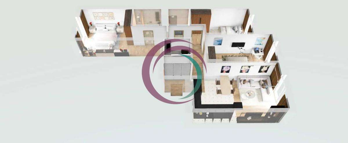 Площа: 96,9 м2 (житлова - 47,4 м2, кухня студіо - 25,5 м2, санвузли: 4,5 м2 та 3,7 м2)