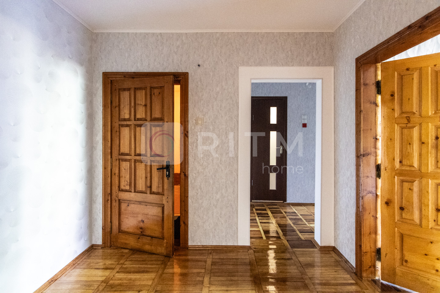 Паркет у кімнатах та коридорі цикльований і лакований, з теплоізоляційною основою